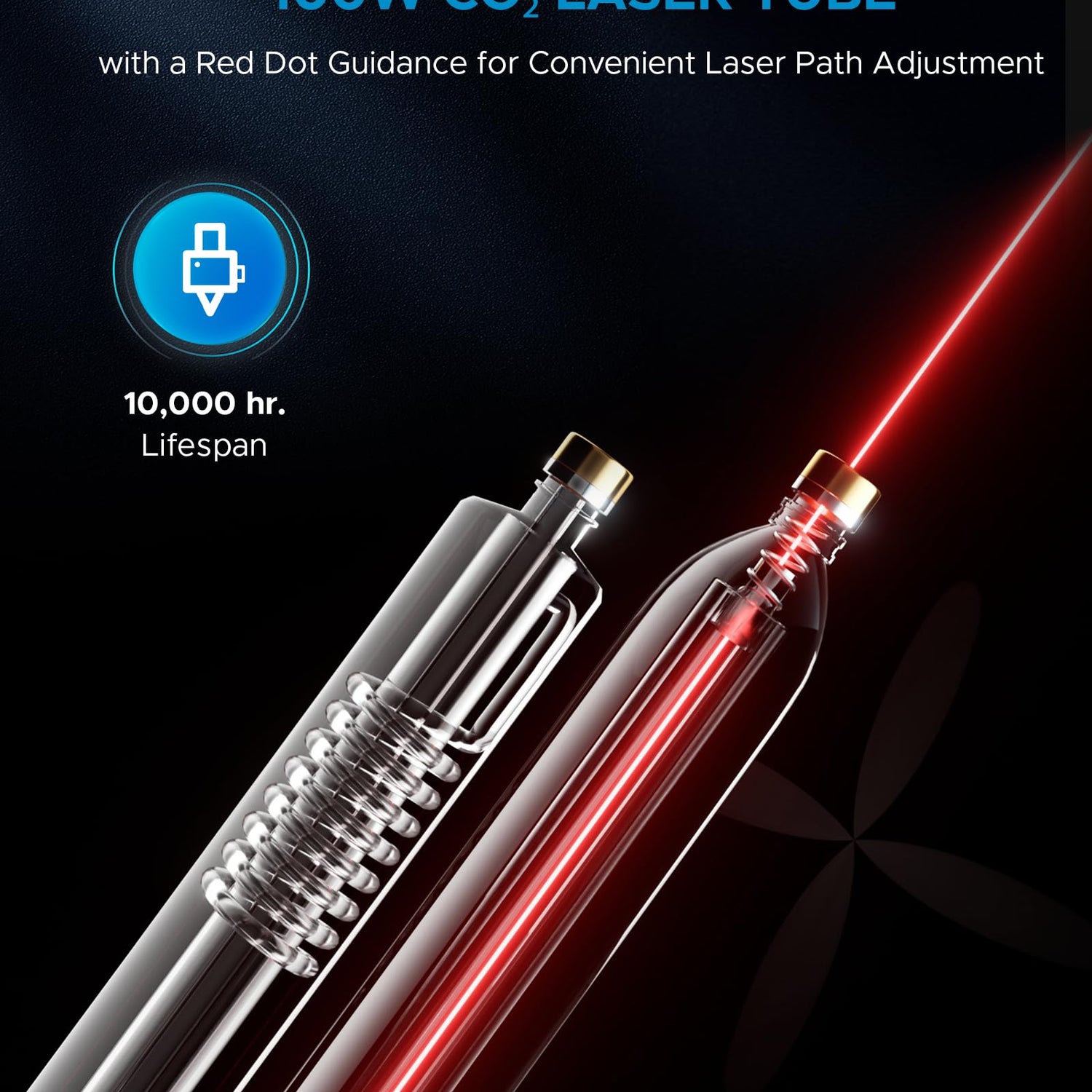 - Dive into Work with Confidence: The high-performance laser tube delivers 100W of power for up to 7,000 hours of usage and extends its lifespan when consistently used at lower settings, while the red dot guidance allows you to visualize and adjust the laser's location for ultimate precision.