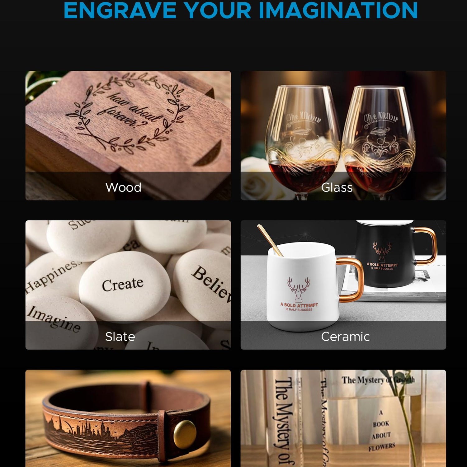 - Double the Speed: Supercharge your efficiency with the laser engraving machine's upgraded ball-bearing guide rails and X & Y-axis servo motors, reaching an impressive speed of 1200 mm/s to bring your creative ideas to life in less time!