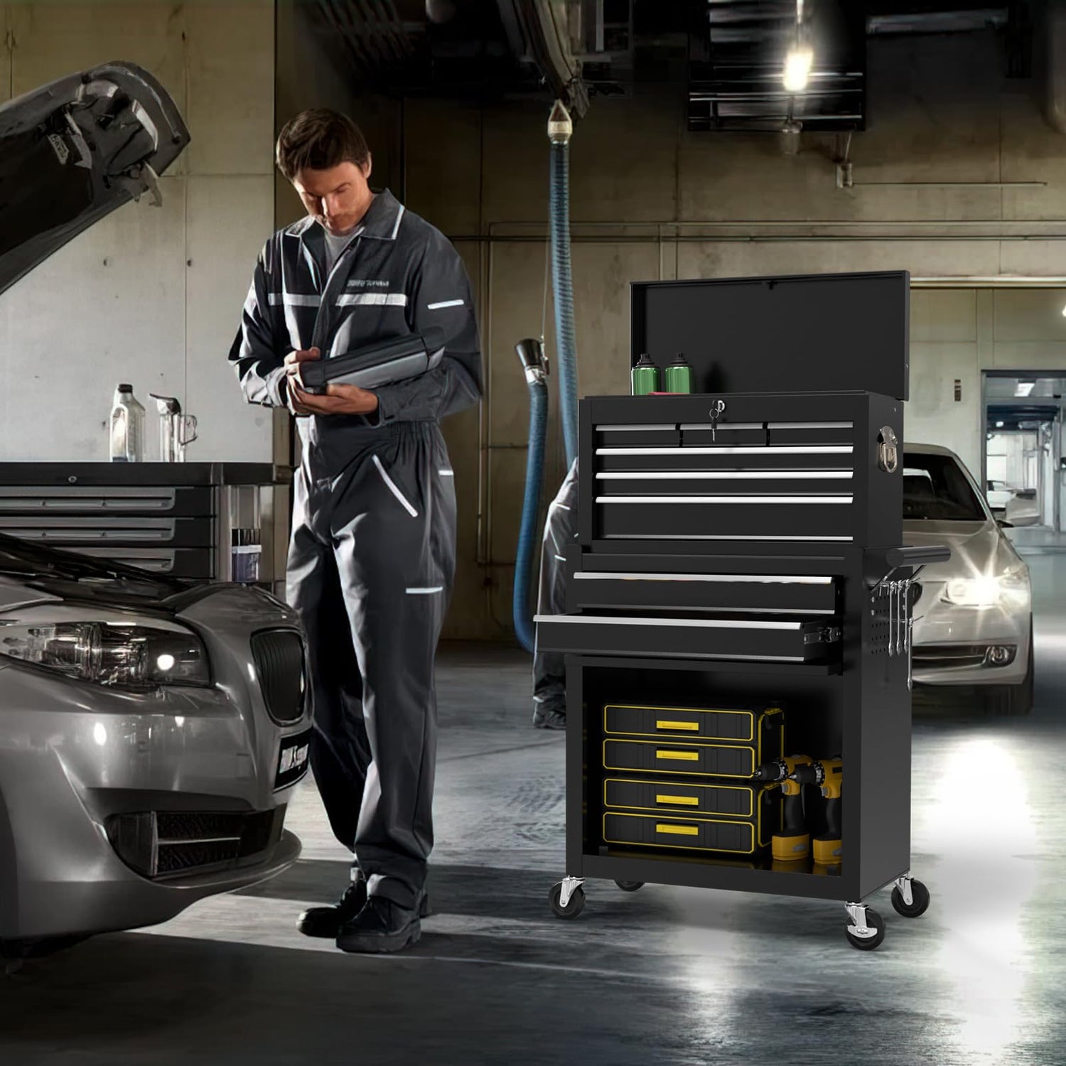 On Shine 8 Drawer Rolling Tool Chest, Large Capacity Rolling Tool Box With Wheels, Locking Mechanical Tool Chest, Portable Tool Box with Sliding Drawers,Metal Tool box for Garage Workshop (Black)