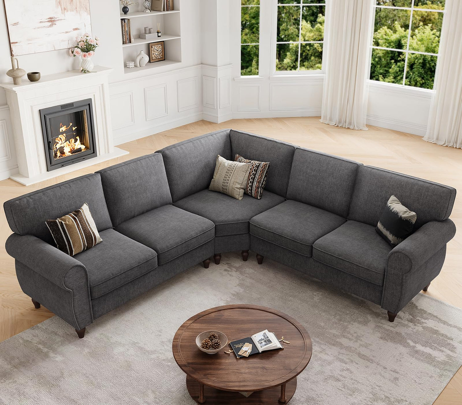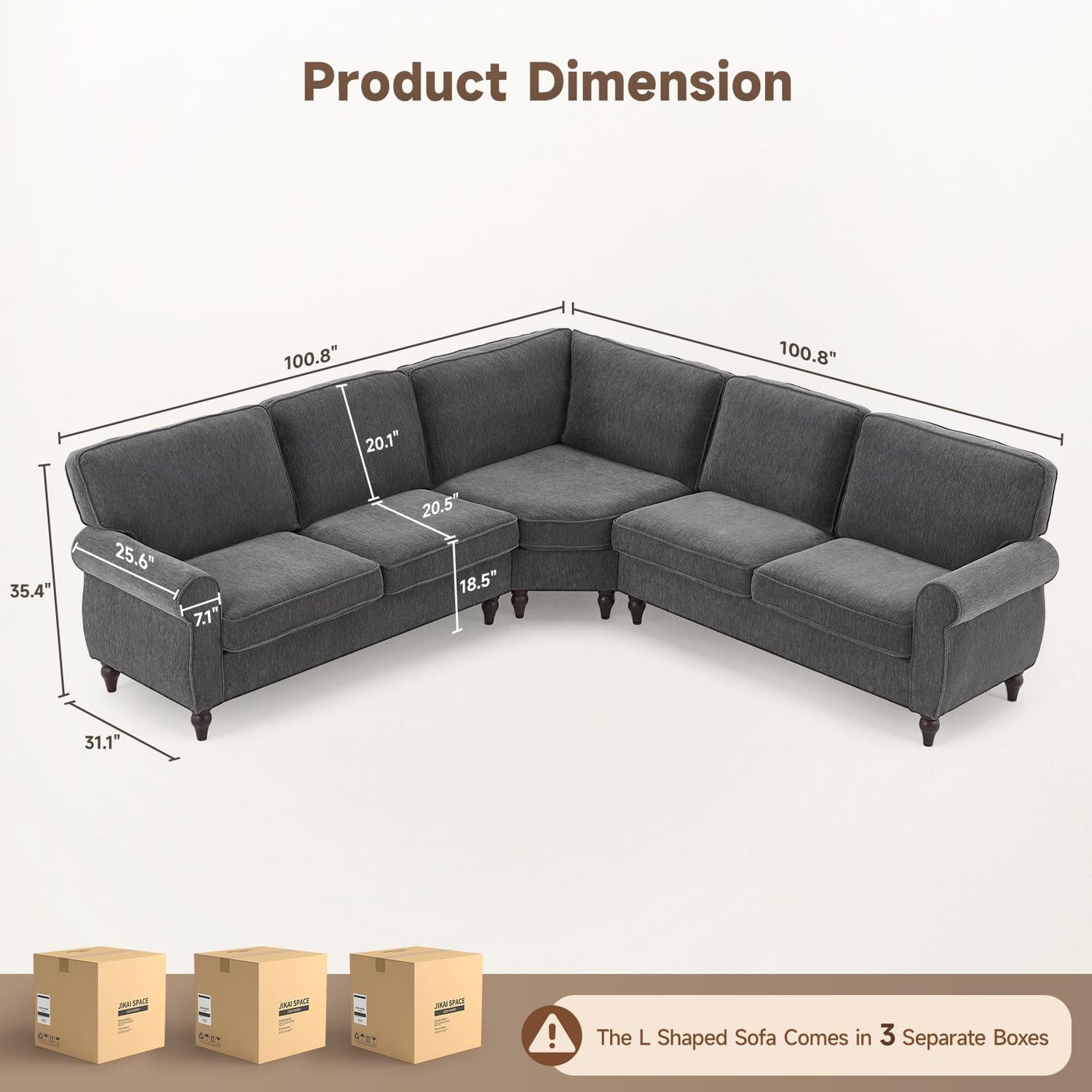 - Stylish Design: This L shaped couch features elegant rolled arms and turned wood legs that complement any home decor. The premium soft and durable chenille fabric offers a plush feel that enhances comfort and style