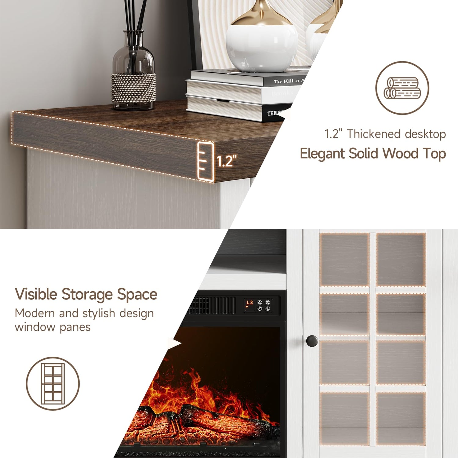 ONBRILL 59" Fireplace TV Stand, Entertainment Center with 23" Electric Fireplace, TV Table for TVs up to 65 Inch, Media Console Cabinet with Storage and Glass Doors for Living Room,Wood White