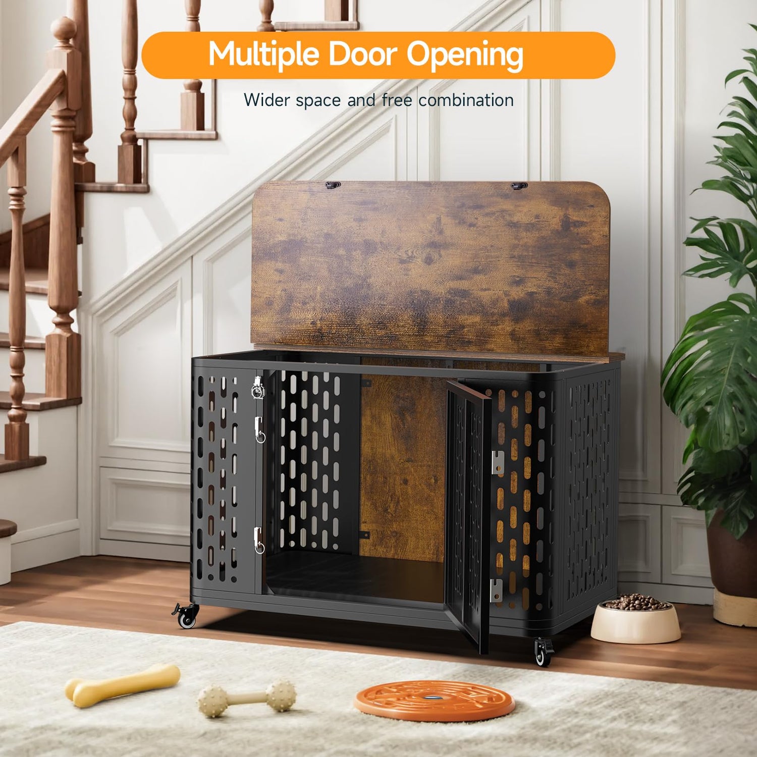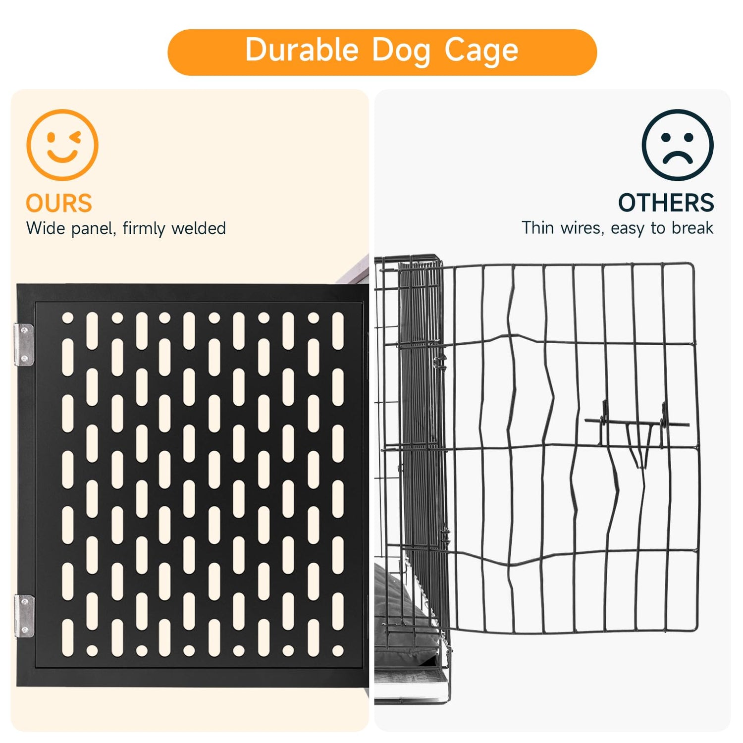 - 【Sturdy and High Quality】 Indoor dog kennel is made of premium metal material and MDF. The mesh metal frame gives dogs nowhere to bite, and is stronger than dog crates for medium dogs or others, providing a long, stable, and safe resting place.