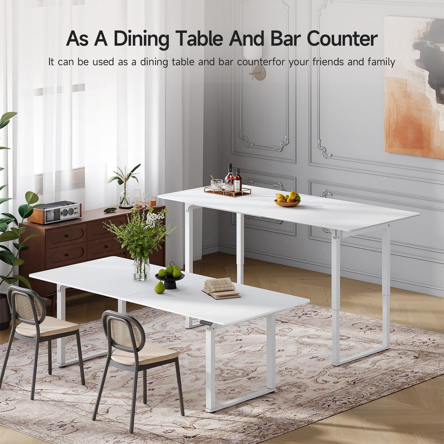 - 【Stand up Desk with 4 Legs】The desktop of this rectangle desk is spliced and not a whole board. The height adjustable desk features the latest design of 4 Legs. This latest technological design gives computer workstations greater stability than any other desk on the market. The simple and stable leg design allows you to easily switch from sitting to standing in seconds. This computer workstation has a dynamic load capacity of 176 LBS.
