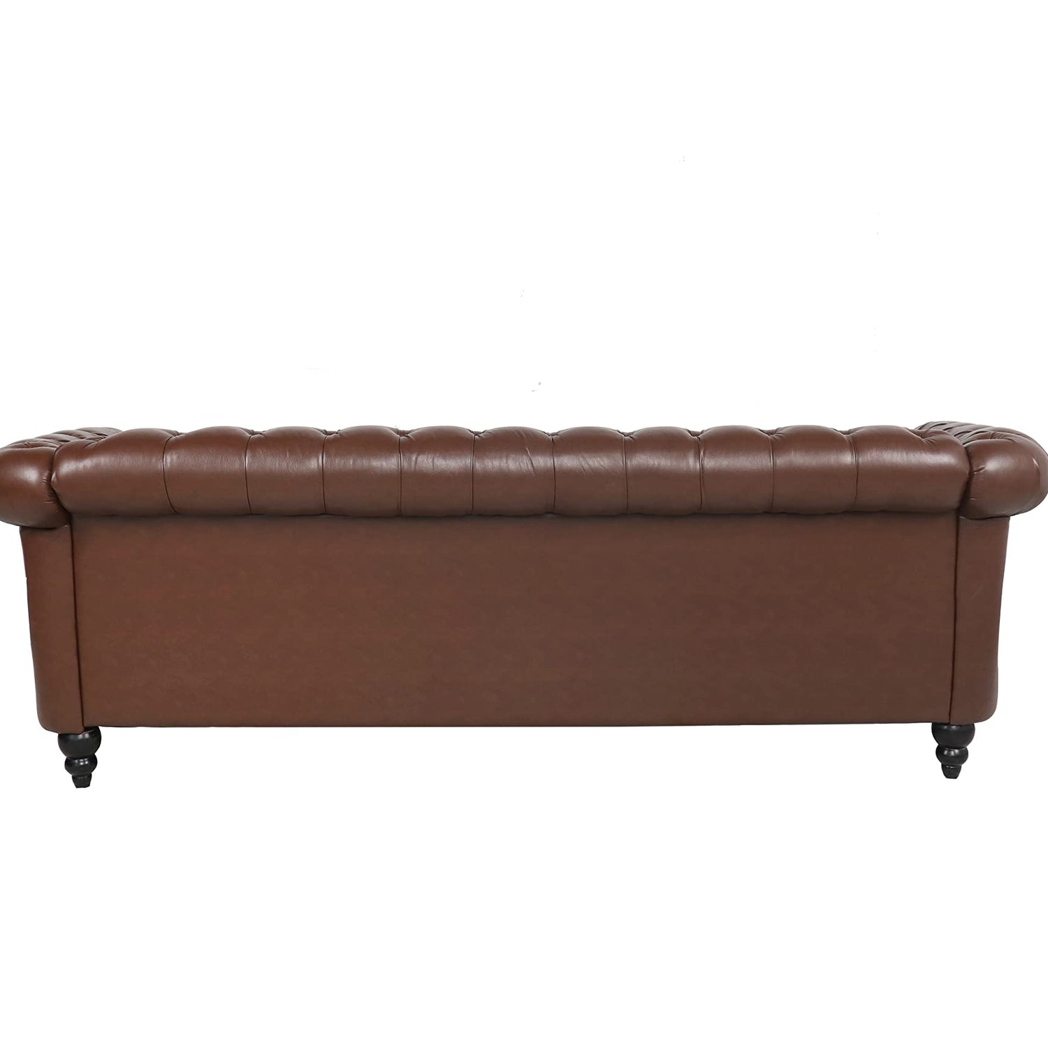 - Chesterfield Style: Designed With The Traditional Chesterfield Style Of The Tufted Leather Sofa, The Couch Brings An Atmosphere Of Luxury With Tufted Deep Button, Nailhead Accents, Scrolled Arms.