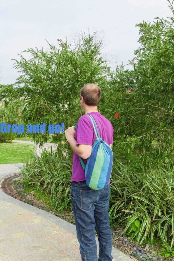 ONCLOUD Extra Long and Wide Double Hammock for Travel Camping Backyard, Porch, Outdoor or Indoor Use, Carrying Pouch Included (Blue/Green Stripes)