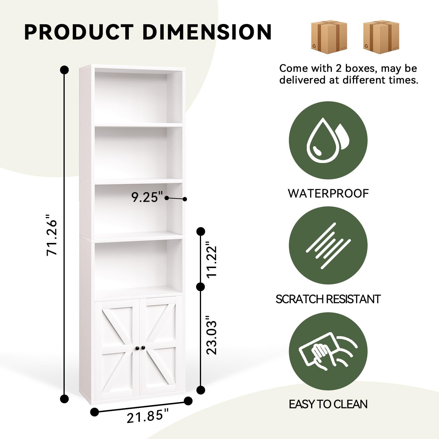 - Extensive Storage Space: Farmhouse bookshelf with cabinet doors offers neat and concealed storage space. With six ample storage shelves, it can hold your everyday items or miscellaneous belongings, keeping your room tidy and making your life and work easier and more convenient