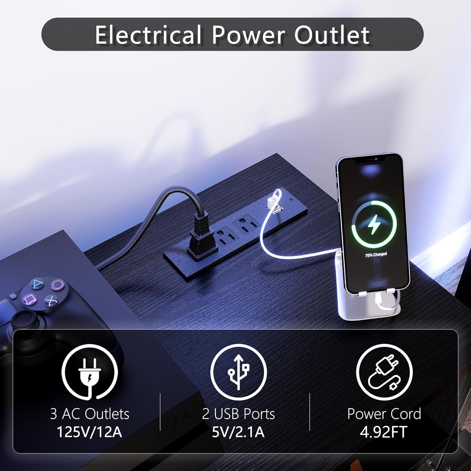 - Multi-function TV Cabinet: This entertainment center has three 125V/12A power outlets and two 5V/2.1A USB ports built in to meet your daily charging needs. The open storage space on both sides is equipped with 12-color LED light strips, which use remote control to adjust different colors to meet the ambient atmosphere