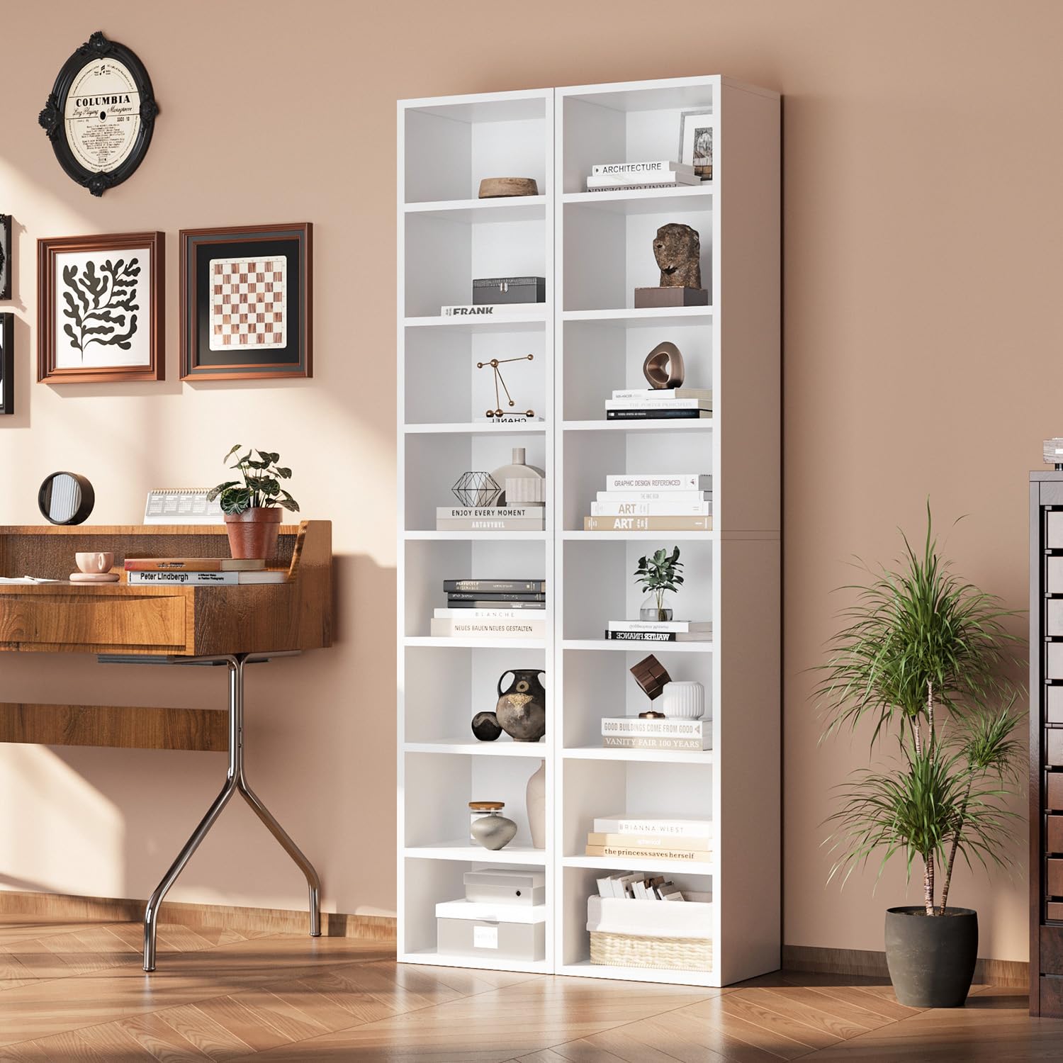 oneinmil 71.5" Tall Narrow Bookshelf, 8-Tier Cube Display Rack, Modern Corner Bookshelf with Storage Space, CD Storage Cabinet for Home Office (White 1 Pack, 8-Tier)