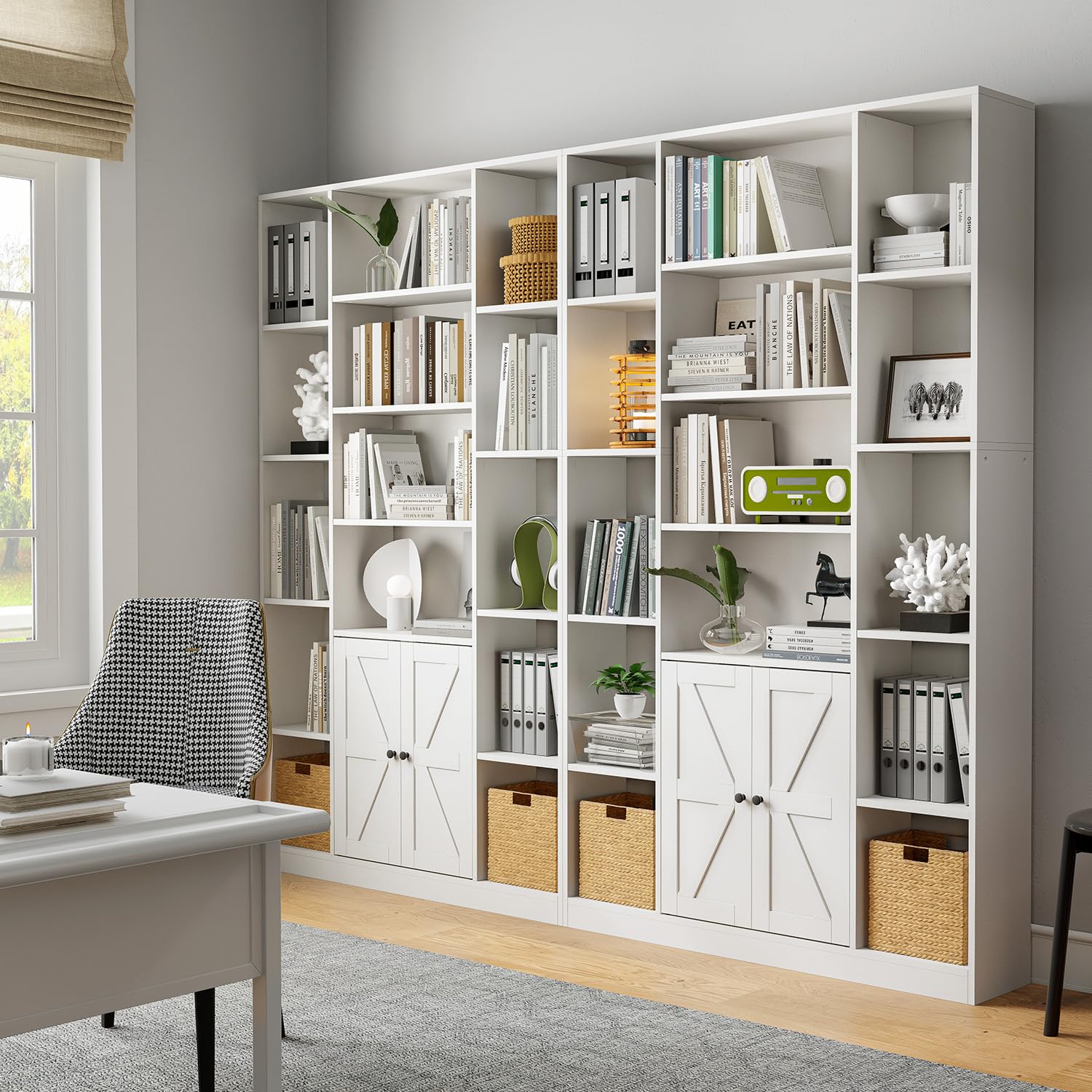 oneinmil 74" Tall Bookshelf and Bookcase, 6-Tier Wooden Bookshelves with Cabinet Doors, Floor Bookshelves and Office Storage Cabinets for Home Office, Living Room (74" H x 45" W)