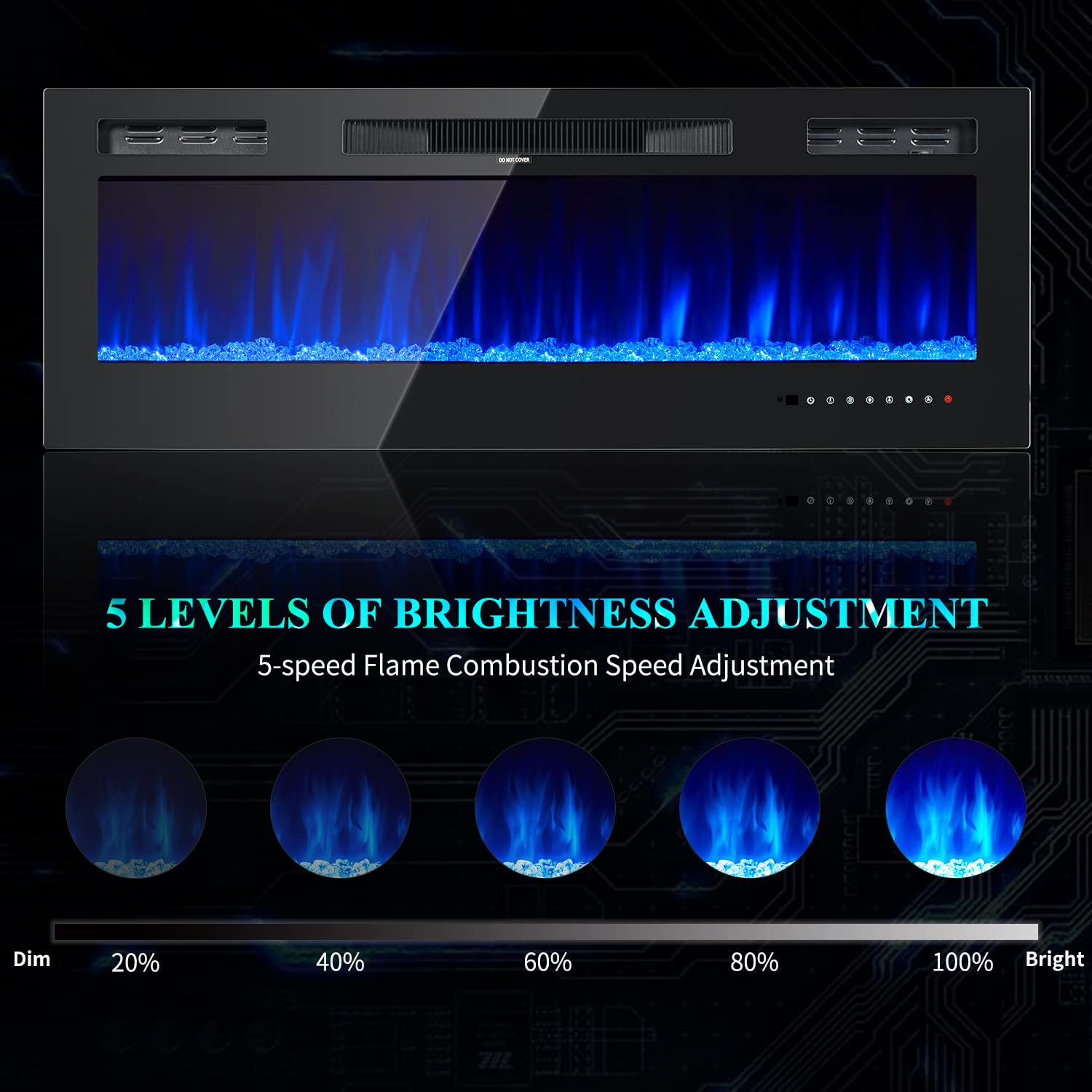 oneinmil Electric Fireplace, 50 inch Wide Recessed/Wall Mounted Electric Fireplace, Remote Control with Timer 12 Adjustable Color Flame, Remote Control,with Crystal Stone, 750/1500W
