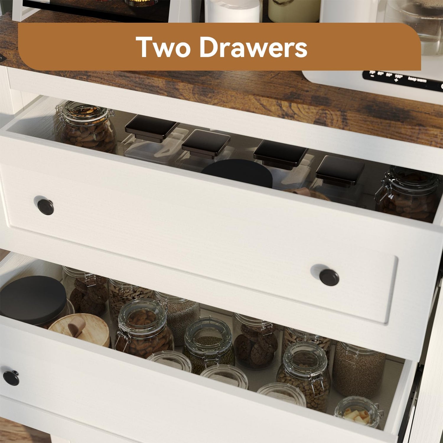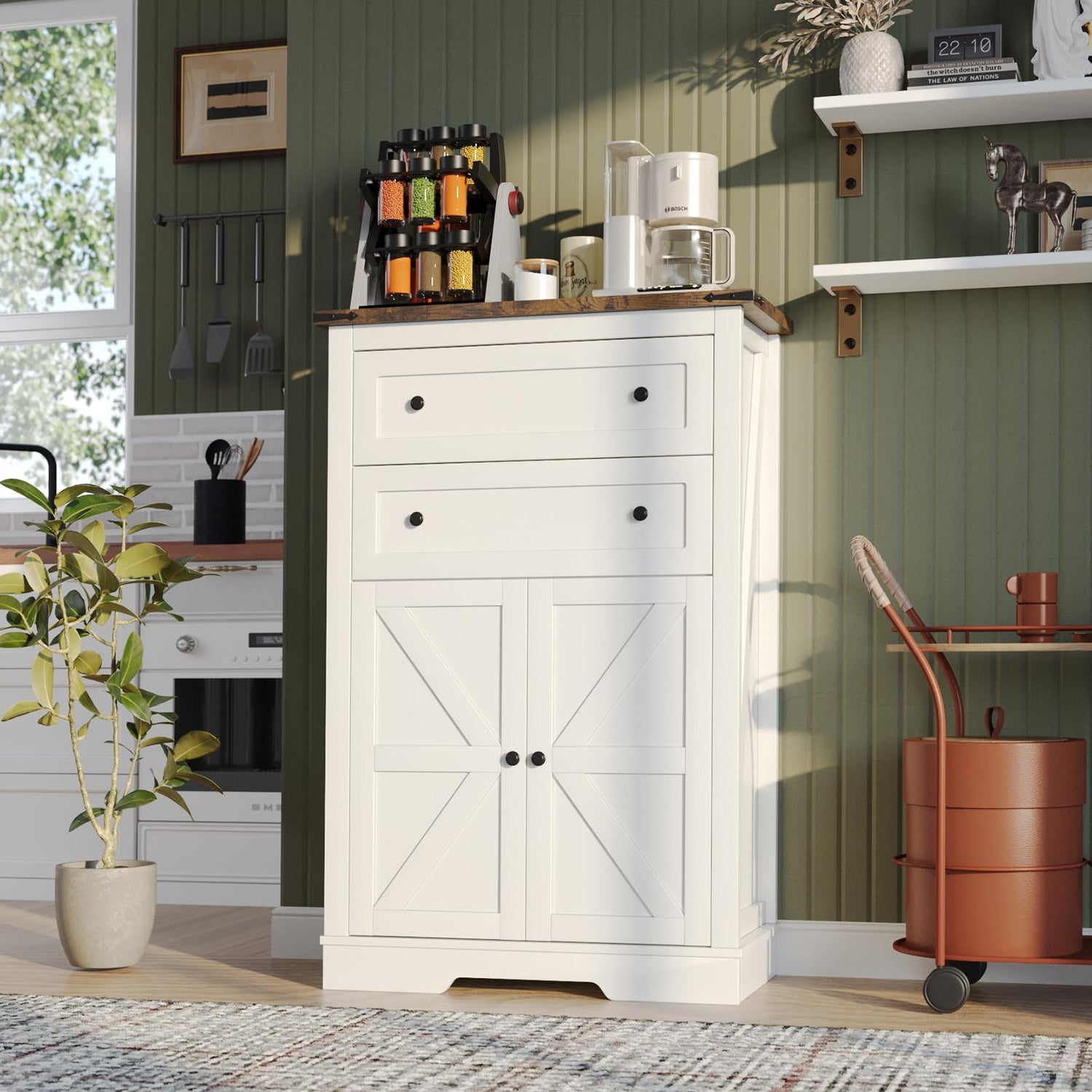 oneinmil Farmhouse Dresser for Bedroom, Rustic Tall Chest with 2 Drawers, Storage Organizer Dresser for Bedroom, Hallway, Living Room, Kids Room, White