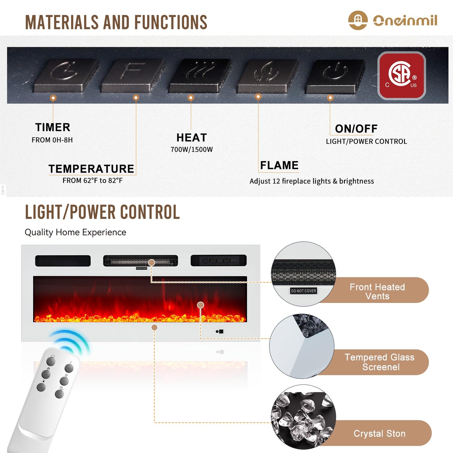 - Safe & Energy-Efficient Fireplace: Adjustable temp range (62-82°F) with overheat protection & auto shut-off timer, CSA&ETL certified
