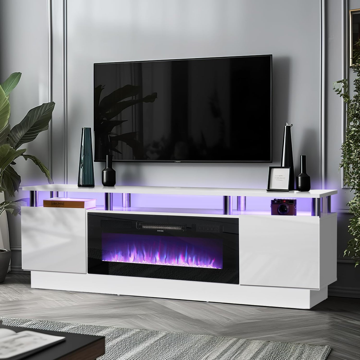 oneinmil Fireplace TV Stand with 36" Electric Fireplace,LED Light Entertainment Center,2 Tier TV Console Stand for TVs Up to 80",Fireplace for The Living Room TV Stand,White