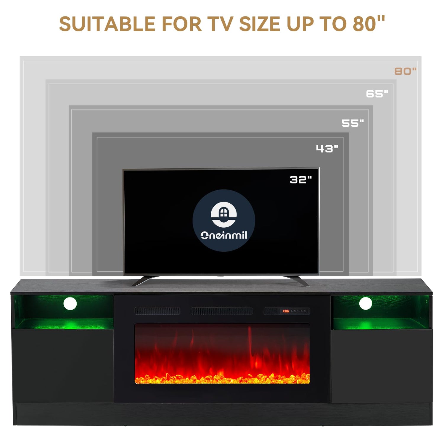 oneinmil Fireplace TV Stand with 36" Electric Fireplace, LED Light Entertainment Center, Modern Wood Texture Entertainment Stand with Highlight Storage Cabinet for TVs Up to 80", 70 inches, Black