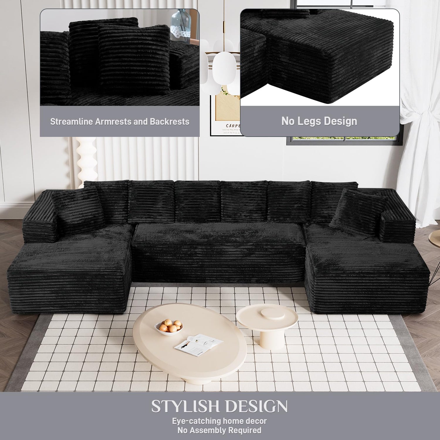 ONEMMLION Modular Sectional Sofa Cloud Couch, 131" Black Boneless Couches for Living Room, Comfy Deep Seat Plush Corduroy Sofa, Modern Fluffy Memory Foam U Shape Sectional Couch with Chaise Lounge