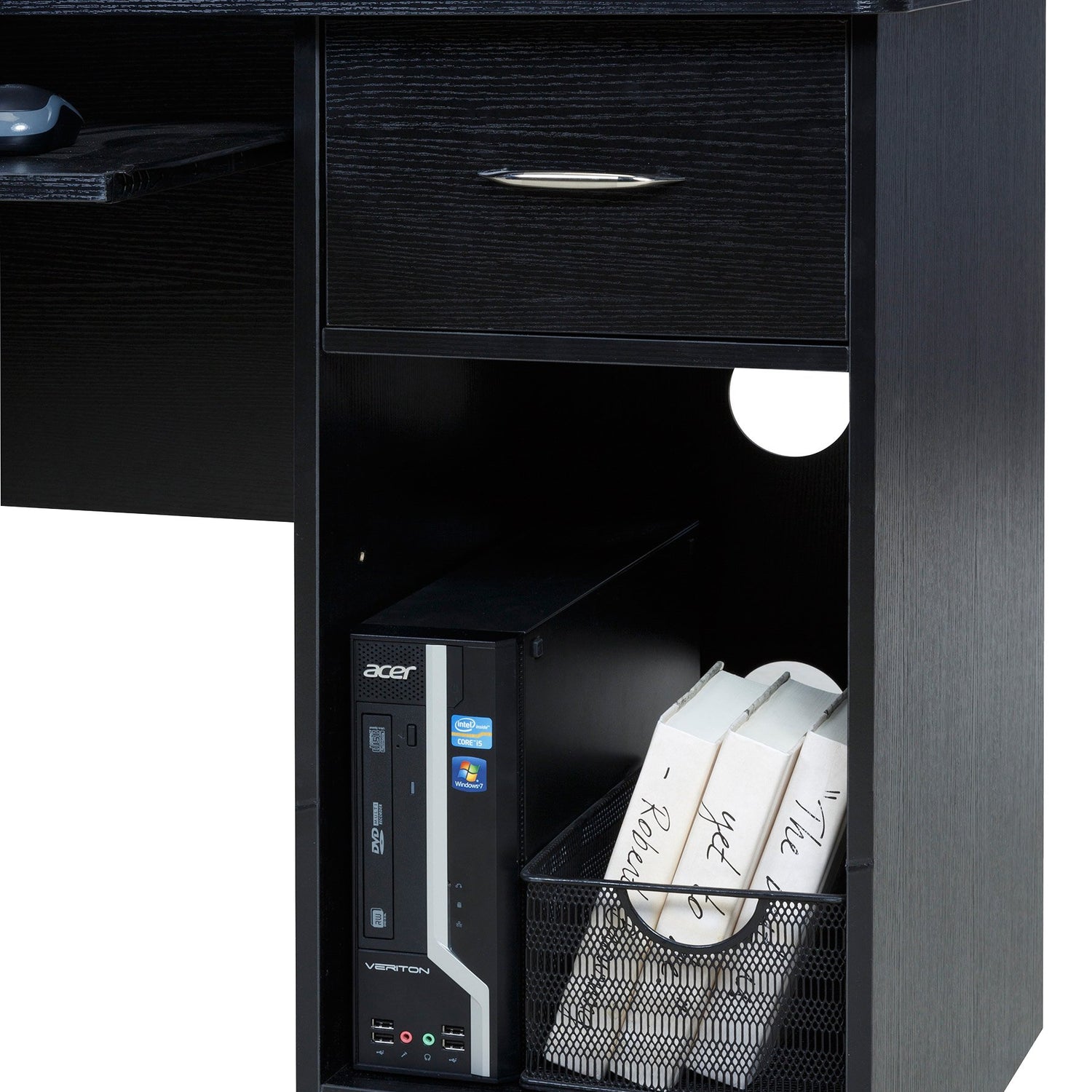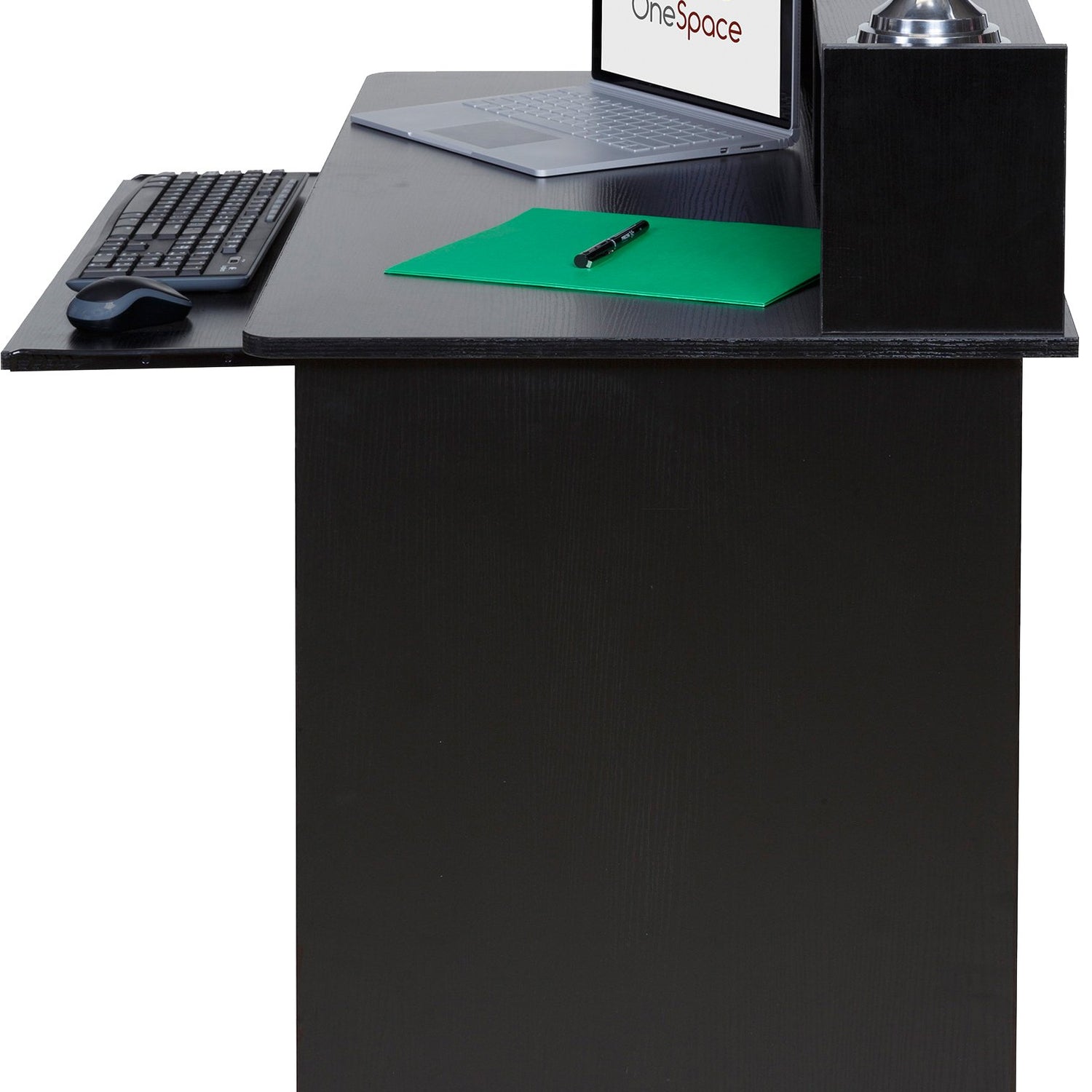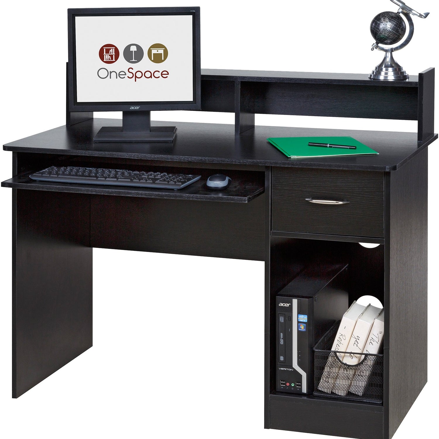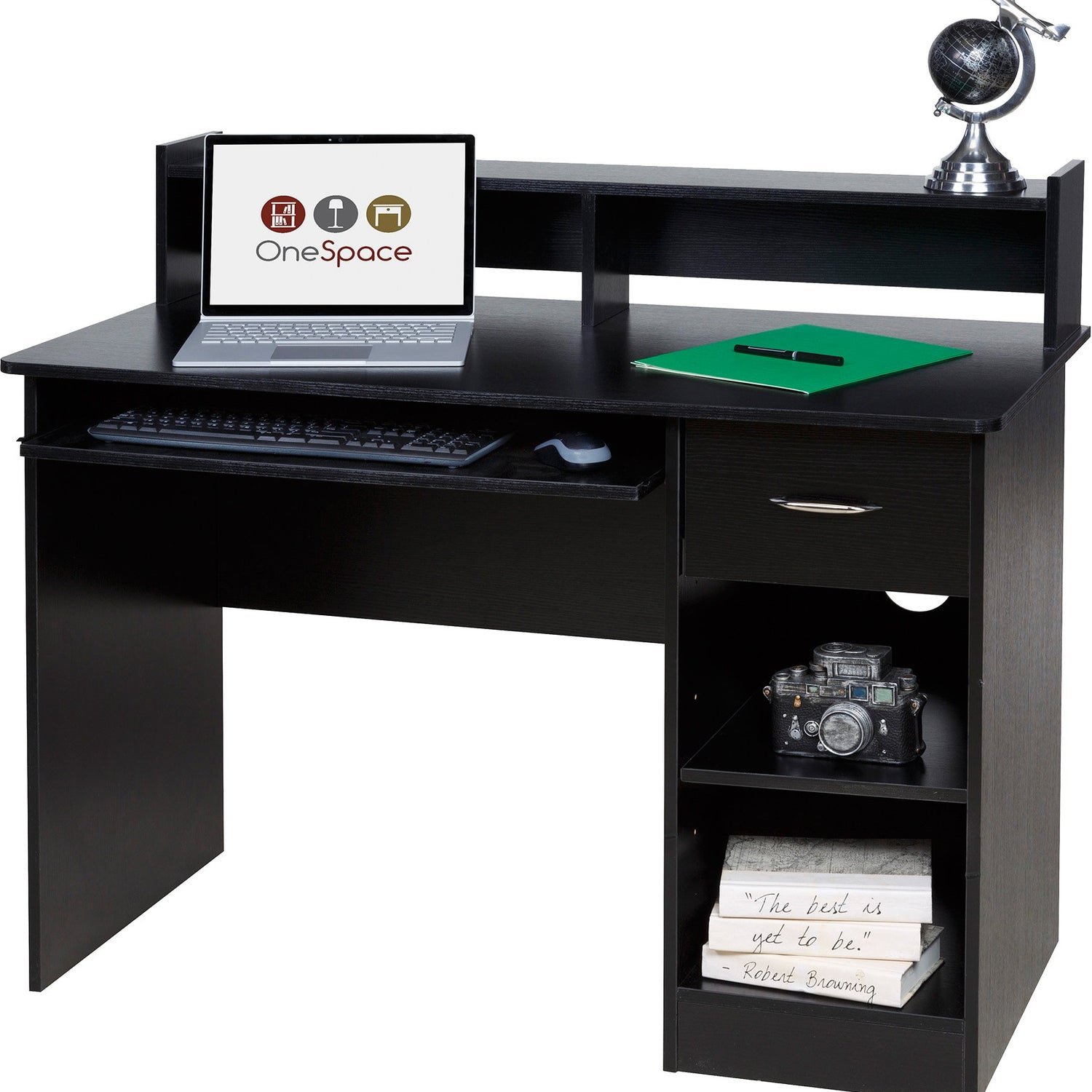 OneSpace Essential Black Computer Desk with Hutch & Pull-Out Keyboard Tray