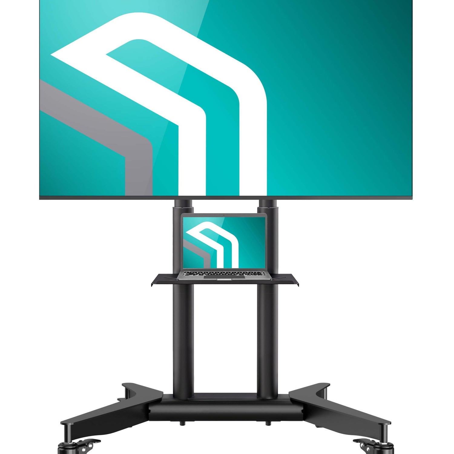 - TV STAND FOR OFFICE AND HOME | Flat screen TV stand rolling cart will meet home and commercial needs | Feel free to use this moveable TV stand on wheels as a trade show TV stand mobile rolling | Arranging video calls in conference rooms and participating in business events is now more convenient with the rolling stand for TV !