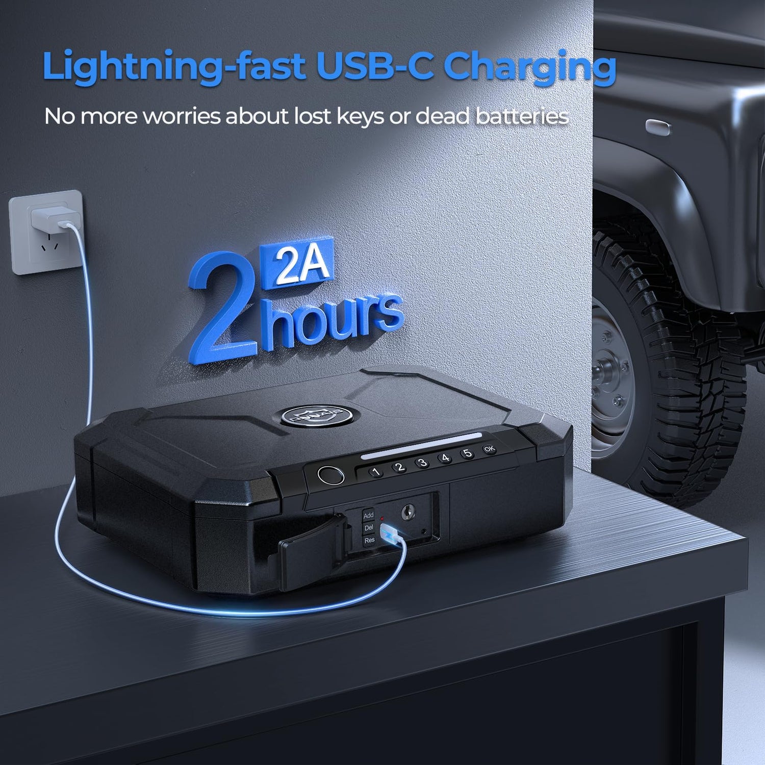 - 【Ultra-Fast USB-C Charging】Lightning quick power transfer with low energy consumption. Gun safe for handgun takes only 2 hours to fully charge and up to 5 months of standby! Gun safe for guns equipped with a low battery alert system, free from battery risks.