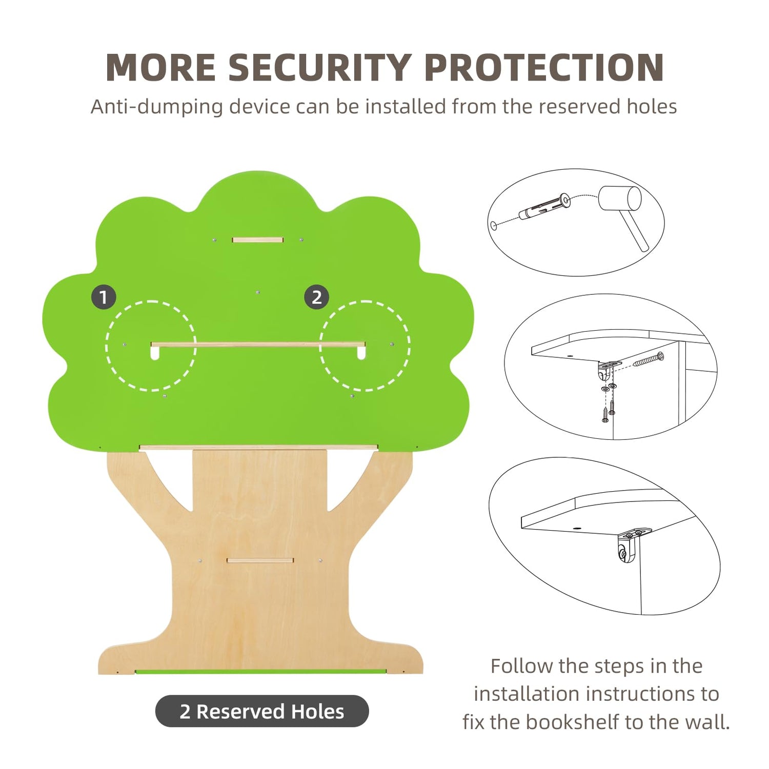- SAFE FOR CHILDREN: Kids bookshelf includes an anti tipping device, and the wall anchor can firmly fix the bookshelf to the wall, preventing the bookshelf from tipping over and injuring your child