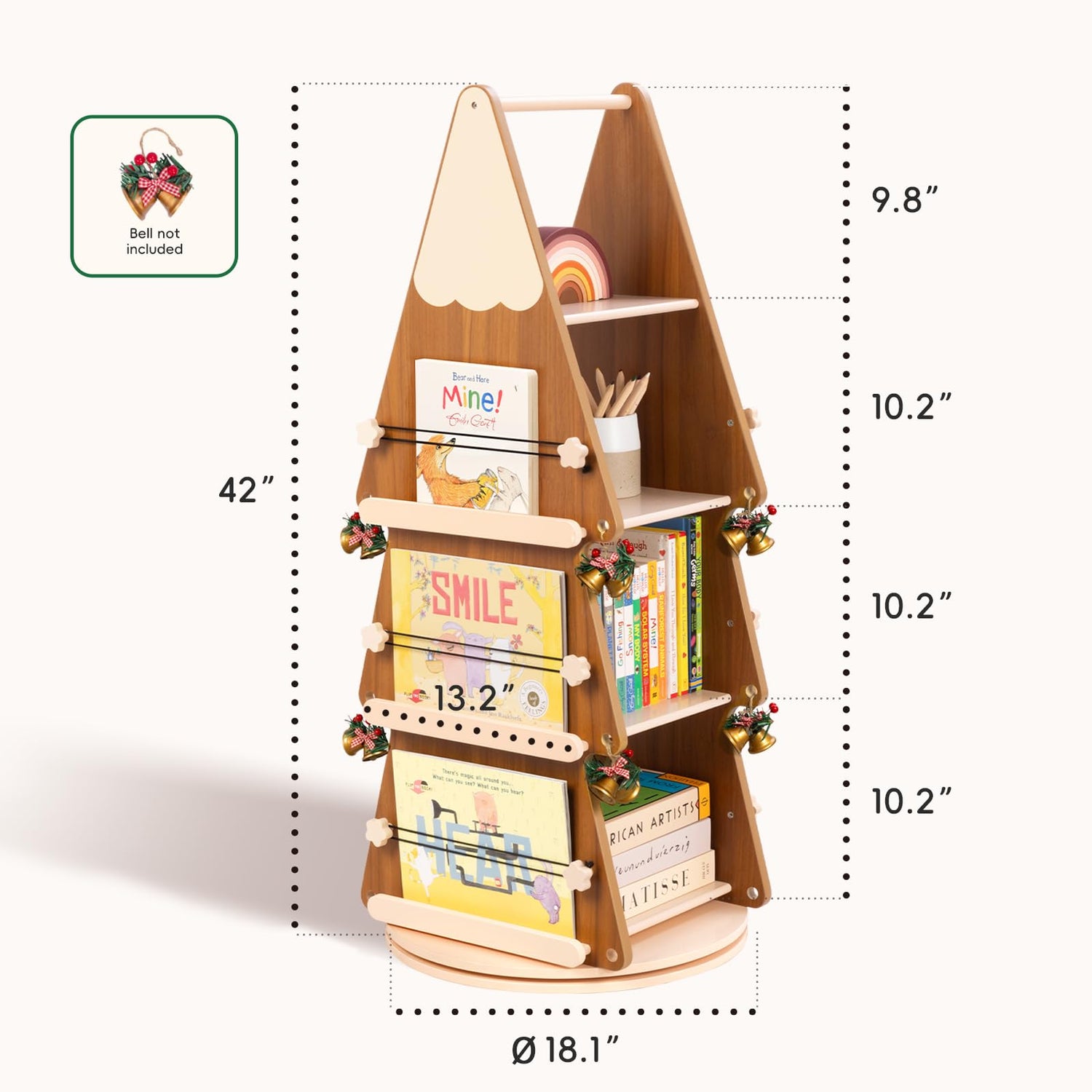 - Unique Tree Design: This revolving bookcase features a Christmas tree design that blends festive charm with everyday functionality. Perfect for holiday decorating and year-round use, it beautifully solves your storage needs