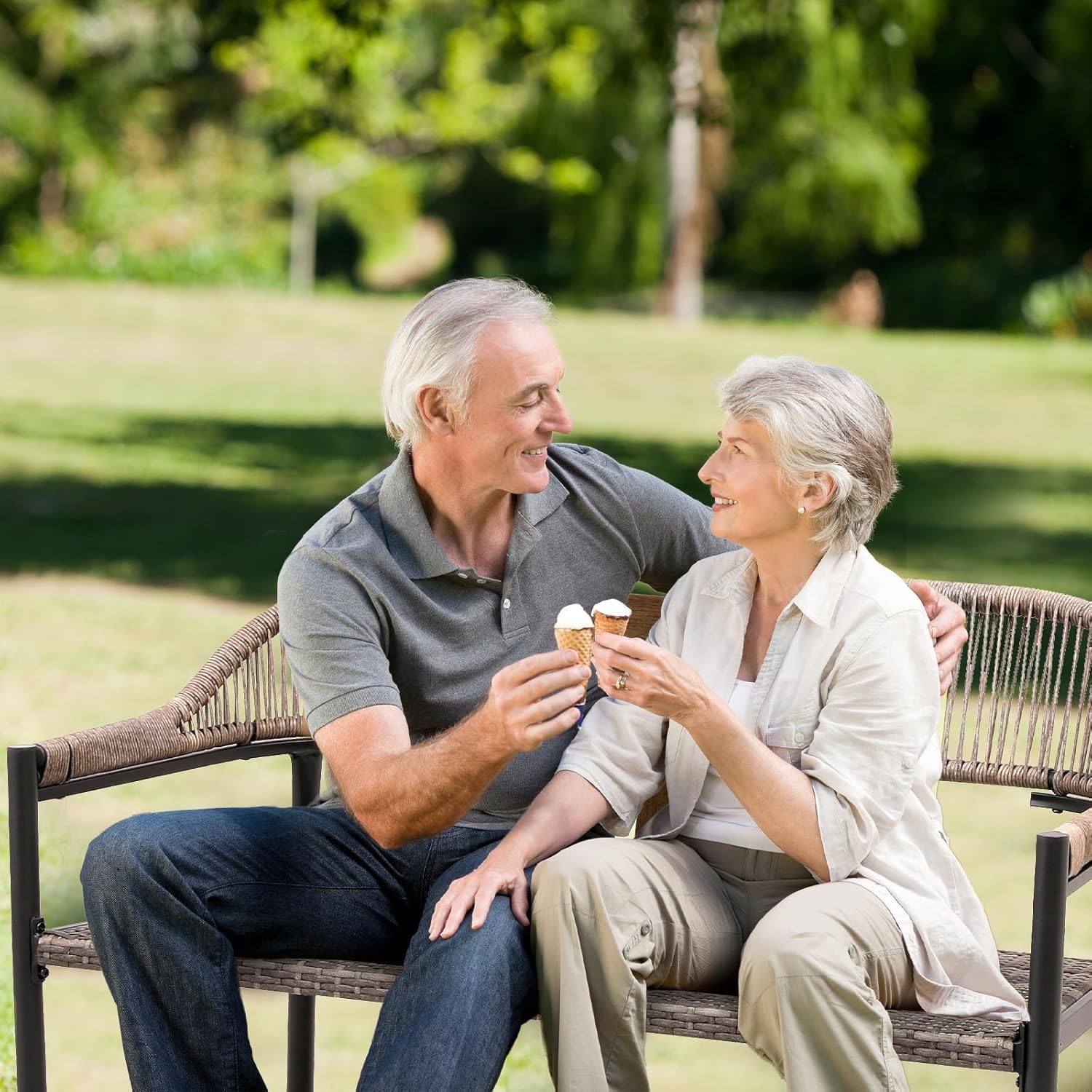 - Comfortable Ergonomic Backrest: The patio bench equipped with ergonomic rattan backrest and armrests, it ensures that you can enjoy the ultimate comfort even when sitting for a long time