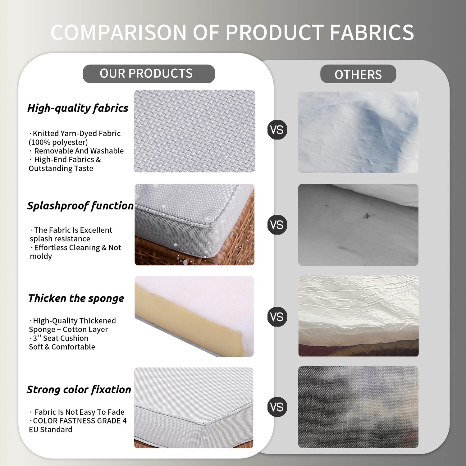 - Comfortable Outdoor Ottomans: These outdoor ottomans feature a 3-inch thick cushion that is both removable and washable, ensuring maximum comfort while you enjoy your outdoor living space. Each ottoman has a generous side length of 16.5 inches, providing ample space.