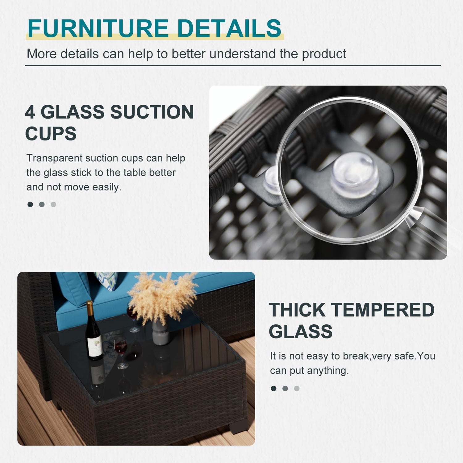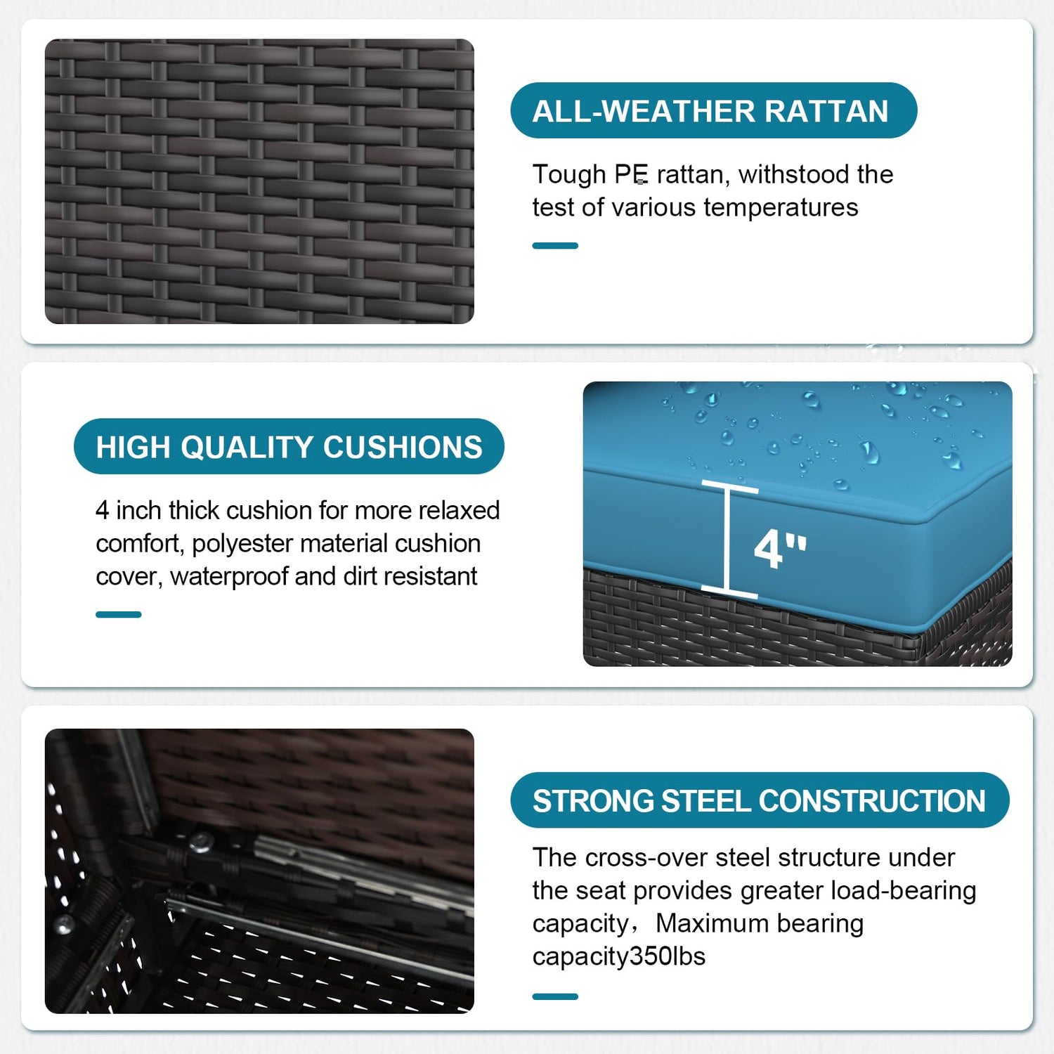 - Customer Support:If there is any question or any part missing or damaged during shipping, please contact us. Outdoor patio furniture is delivered with 3 boxes from domestic.You may not get all boxes at the same time. We recommend assembling the patio set after receiving all boxes