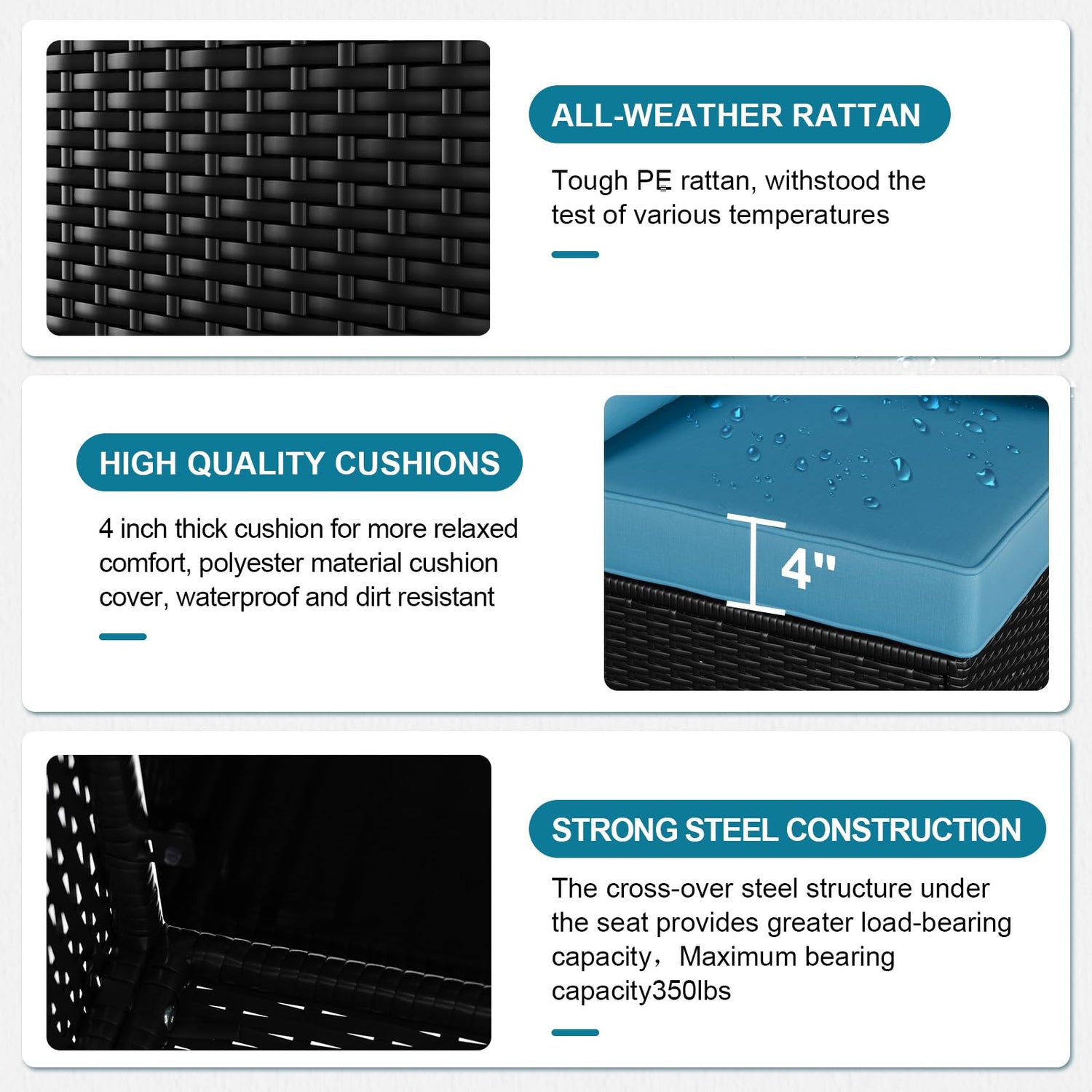 - Customer Support:If there is any question or any part missing or damaged during shipping, please contact us. Outdoor patio furniture is delivered with 3 boxes from domestic.You may not get all boxes at the same time. We recommend assembling the patio set after receiving all boxes