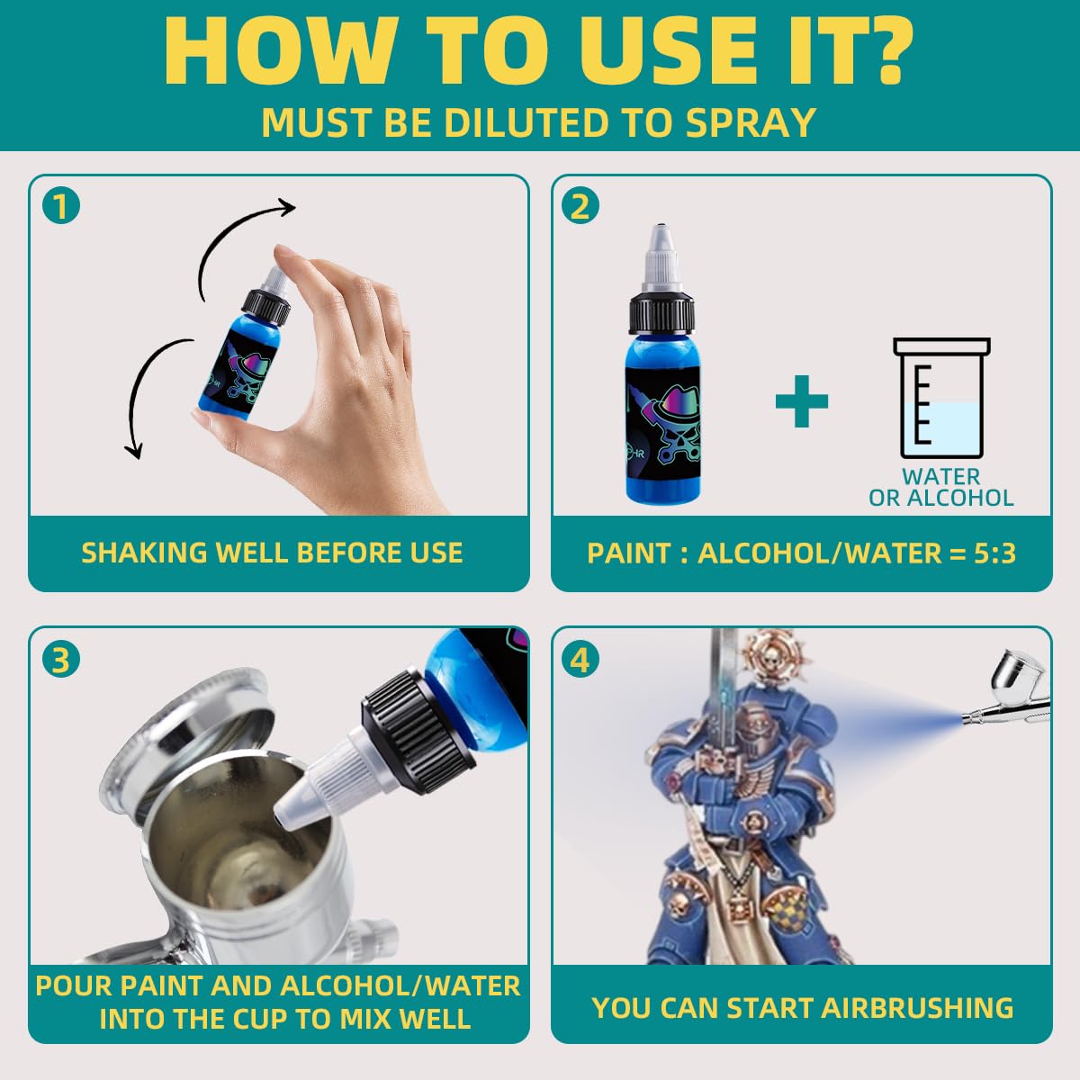 - 【Easy Dilution for Precision】Achieve perfect consistency with customizable dilution. Mix your hobby airbrush paint with water or alcohol at a 5:3 ratio to ensure a smooth flow through your airbrush. OPHIR air brush paint for shoes and more ensures precise control and seamless application, delivering professional-grade results every time.