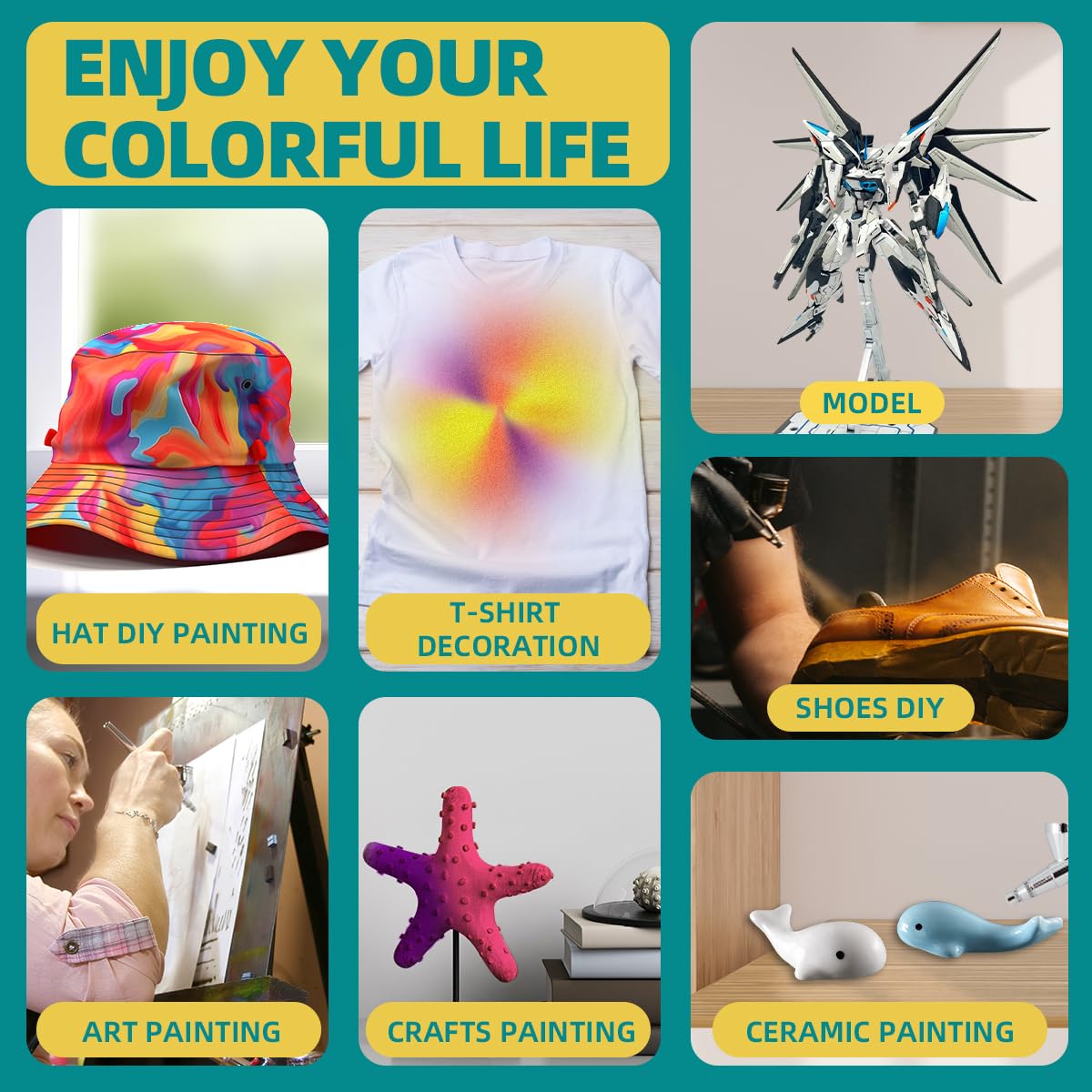 - 【Versatile Application for All Surfaces】Whether working on fabric, wood, leather, canvas, or plastic, this airbrush fabric paint set delivers stunning results on any surface. OPHIR air brush paints acrylic set ensure strong coverage and long-lasting vibrancy, making them the ultimate airbrush for fabric painting, mixed-media projects, and model art. Ideal for DIYers and professional artists alike.