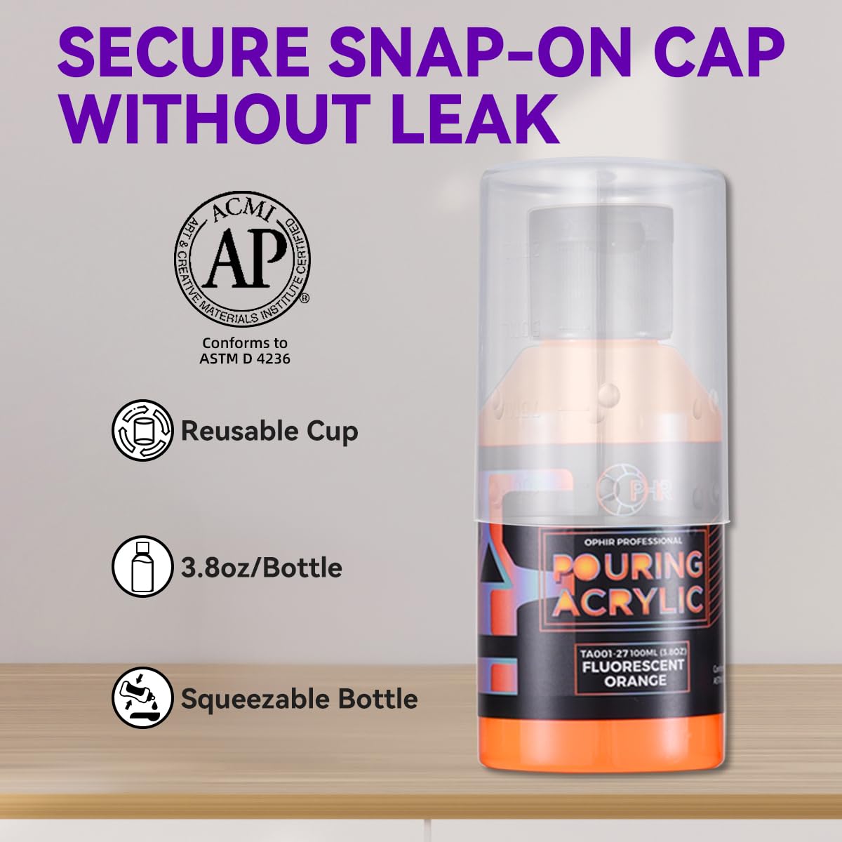 OPHIR Premixed Acrylic Pouring Paint Set, 3.8OZ/Bottle, High Flow Water-Based Pour Paint Supplies for Pouring on Canvas, Wood, Rocks, Light Blue, Fluorescent Pink Yellow Green Orange Purple, 6 Colors