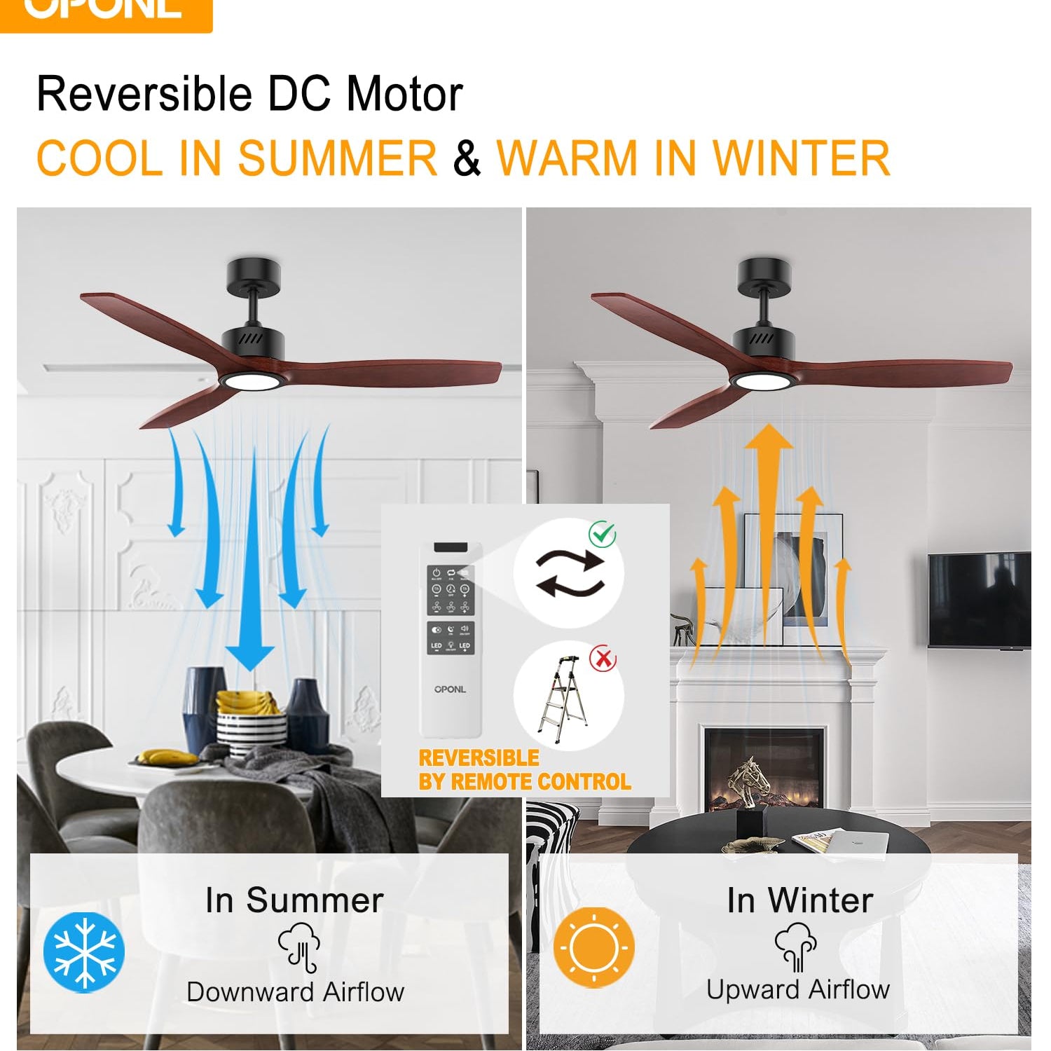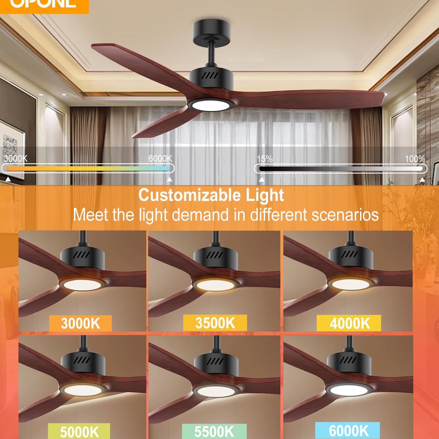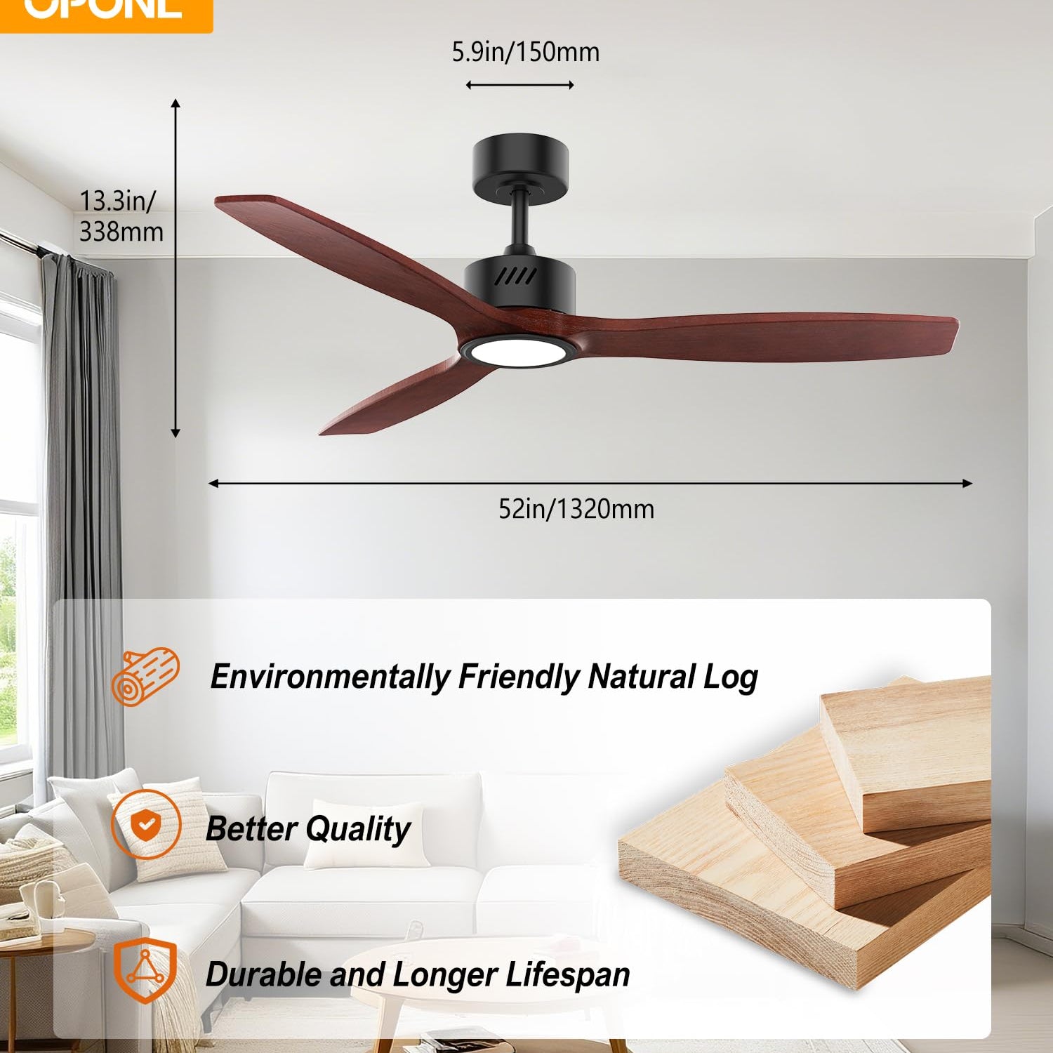 - 【Wooden Ceiling Fans with Lights】Decorate your house with OPONL 52 inch 3 blades wooden ceiling fan with light. The blade is made by environmentally friendly natural log, with better quality, durable and longer lifespan, good choice to decorate your bedroom, living room, office, patio and so on. Not to be exposed directly to rain.