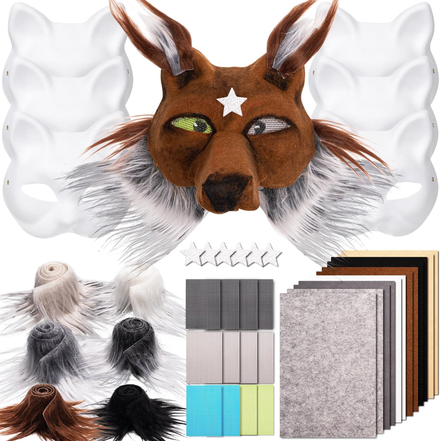 - DIY Fun with Accessories: The package includes 6 blank masks, 6 faux fur fabric precut strip, 12 soft felt fabric sheet measuring about 7.87 x 11.81 inches, 12 eye meshes, 6 star stickers, more convenient for you to make masks with more diverse styles. Pigment and Glue not included.