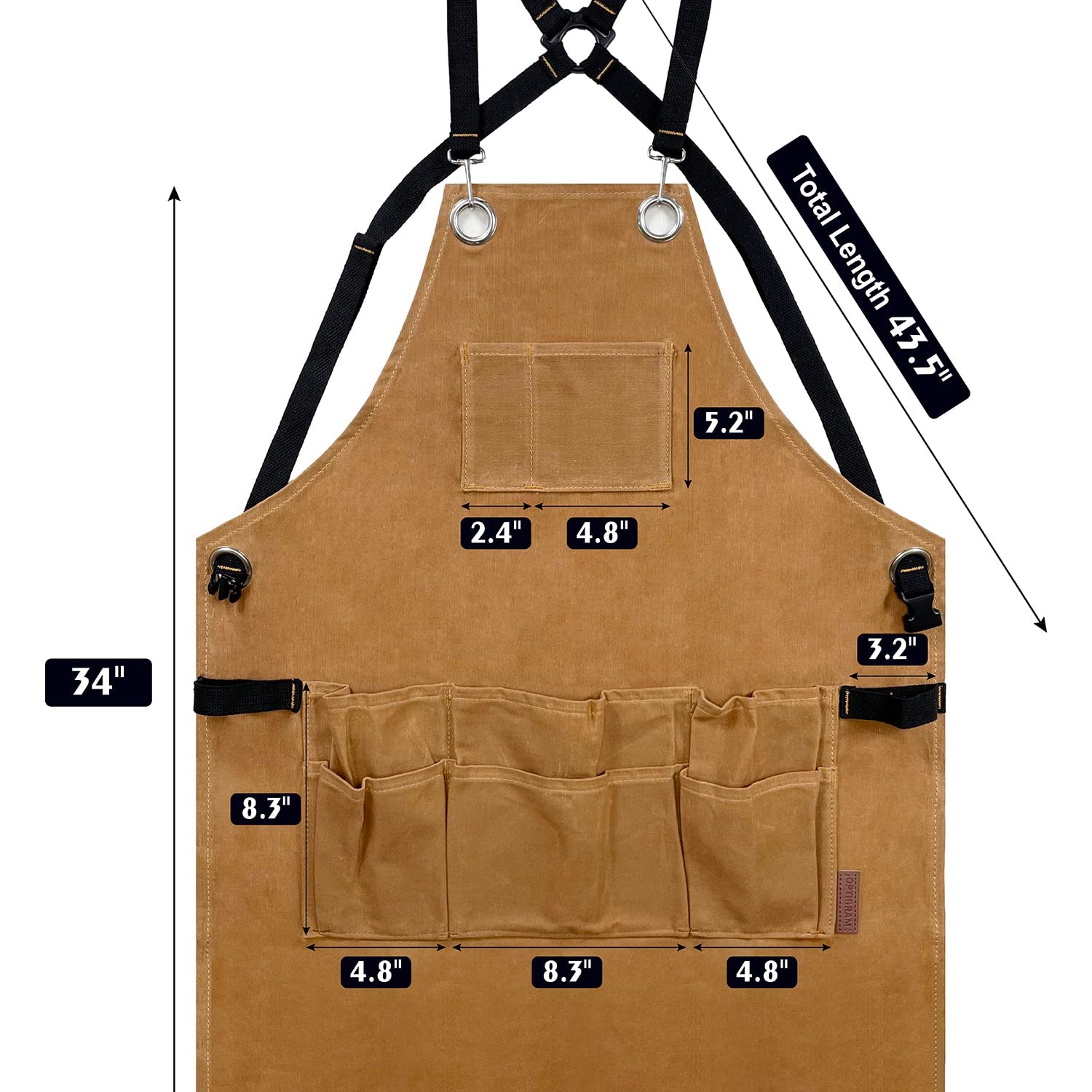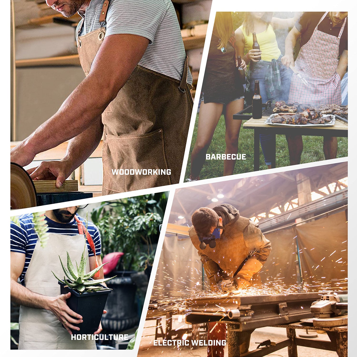 - DURABLE: We make our shop apron from heavy-use 20OZ WAXED CANVAS to equip your tools with a SOLID, DURABLE, WATER-RESISTANT work accessory. It is durable, providing protection and convenience at work, which can be use for a long time at your workshop.