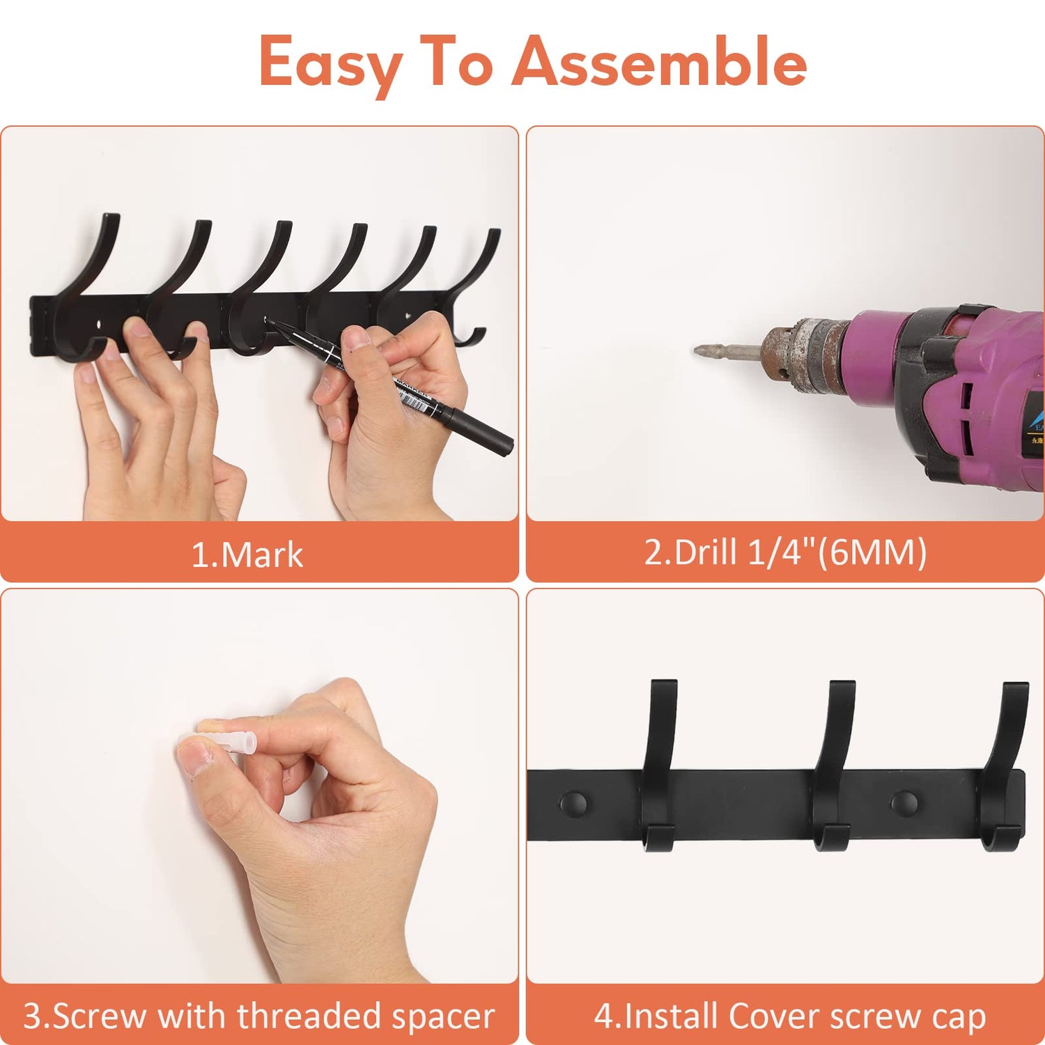 - Anti-Scratch Coat Hooks: All hooks are rounded and smooth, it will never scratch your coats, scarves, towels etc. And the screws are covered with black caps and easily blend in with your interior decor