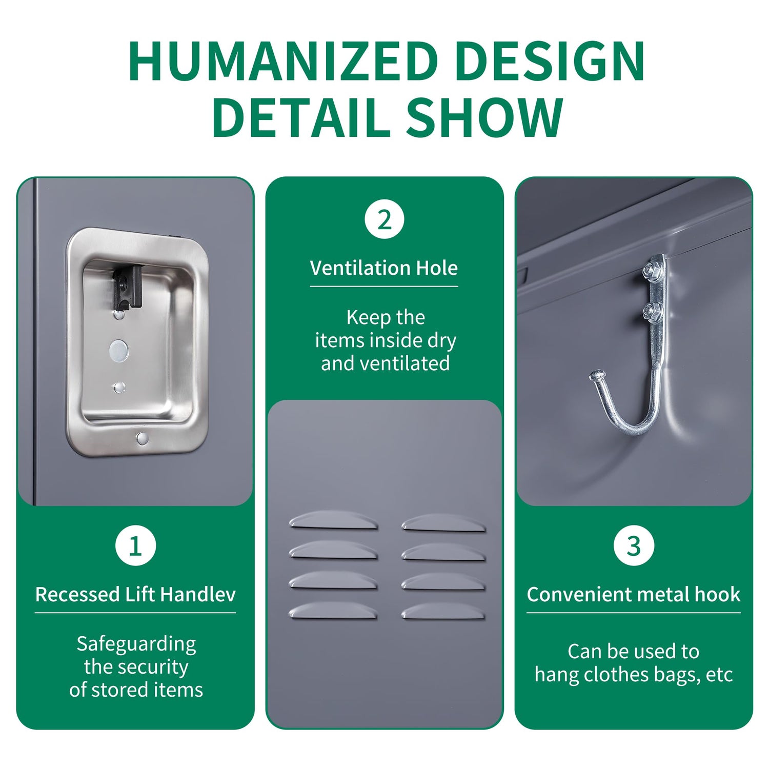 - 【Sturdy and Durable】: This gym locker is constructed from cold-rolled steel plates, reinforcing its structure for exceptional durability. It features a resilient electrostatic powder coating that is environmentally friendly, non-toxic, and free from contaminants. This coating not only prevents fading but also ensures a long lifespan for the locker. Additionally, its easy-to-clean surface adds to its practicality