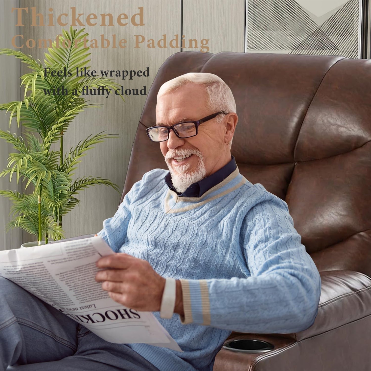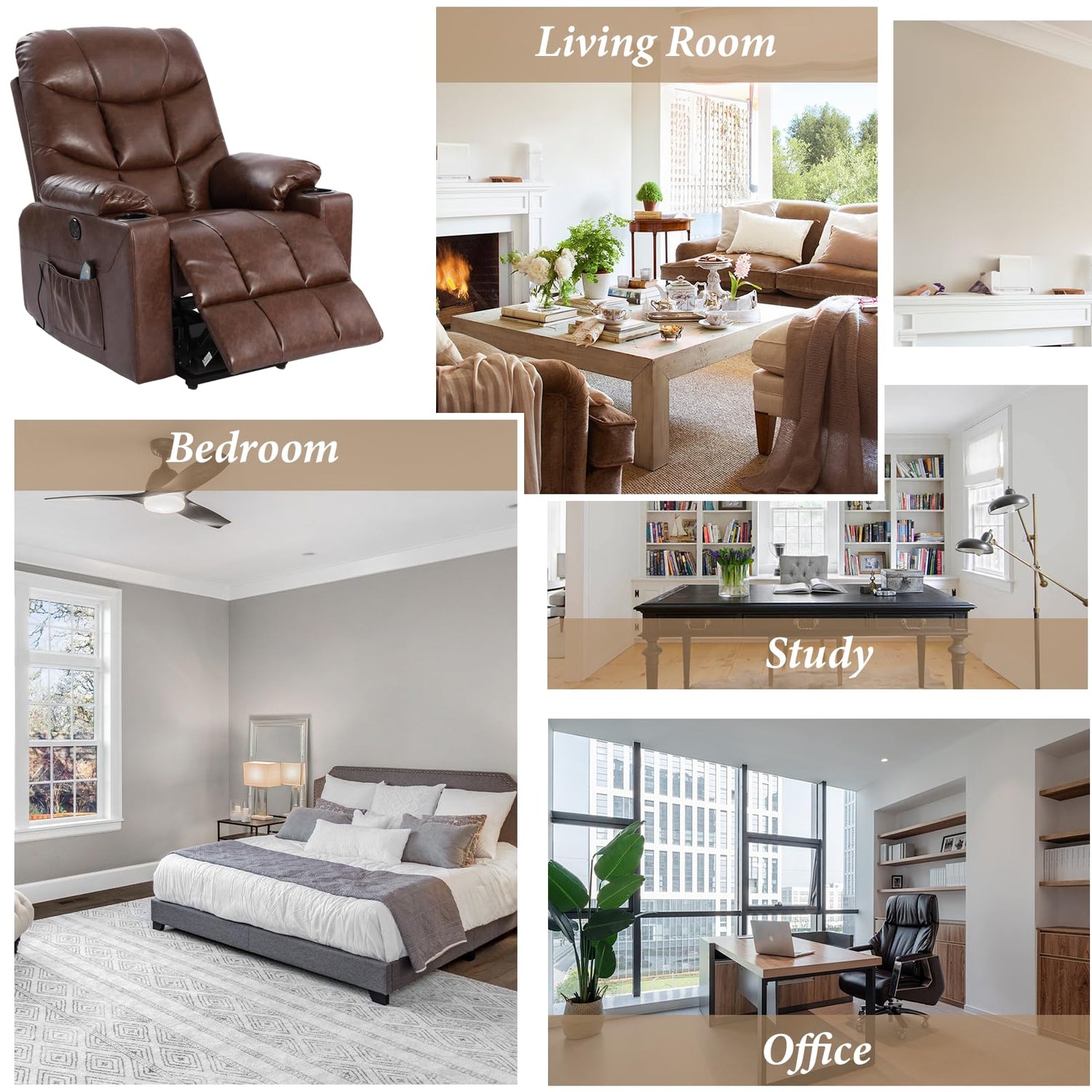 OQQOEE Power Lift Recliner Chair, Electric Recliners Chair for Elderly, PU Leather Massage Chair with Heat, Ergonomic Single Lounge Sofa Home w/Cup Holder, Theater Seating with 2 Pockets/USB