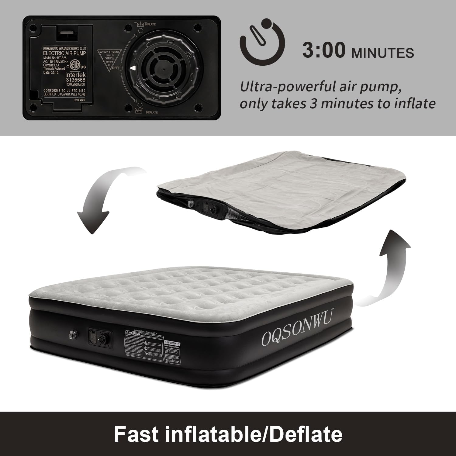 - Excellent guarantee:Oqsonwu camping air mattress queen with built in pump excellent quality assurance is based on our factory quality. Every air mattress needs to undergo repeated tests and load-bearing experience before leaving the factory. Only when all the standards are met can it be sent to you. Therefore, we are confident to provide you with the best quality products. All Oqsonwu products provide a one-year quality warranty. If you have any quality problems, please contact us in time and we will give you a satisfactory reply as soon as possible.
