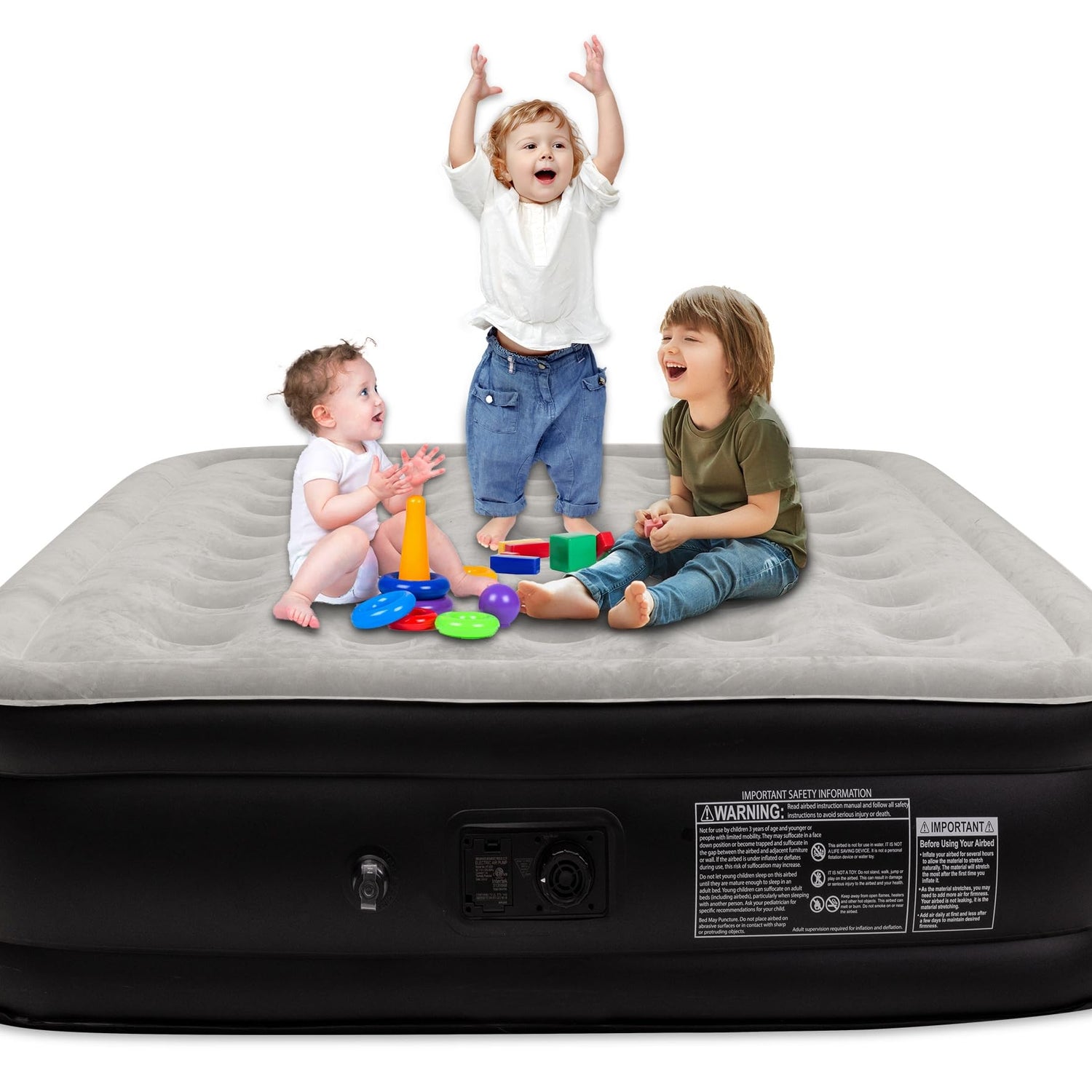 - High-quality material for more comfort:The surface of this queen mattress is made of flocking material, making your sleep quality more comfortable. The bed body is made of new PVC material and K80 resin, providing you with ultimate comfort and stability. The maximum load-bearing capacity can reach 660 pounds, which can fully provide a stable sleep for your family of three.