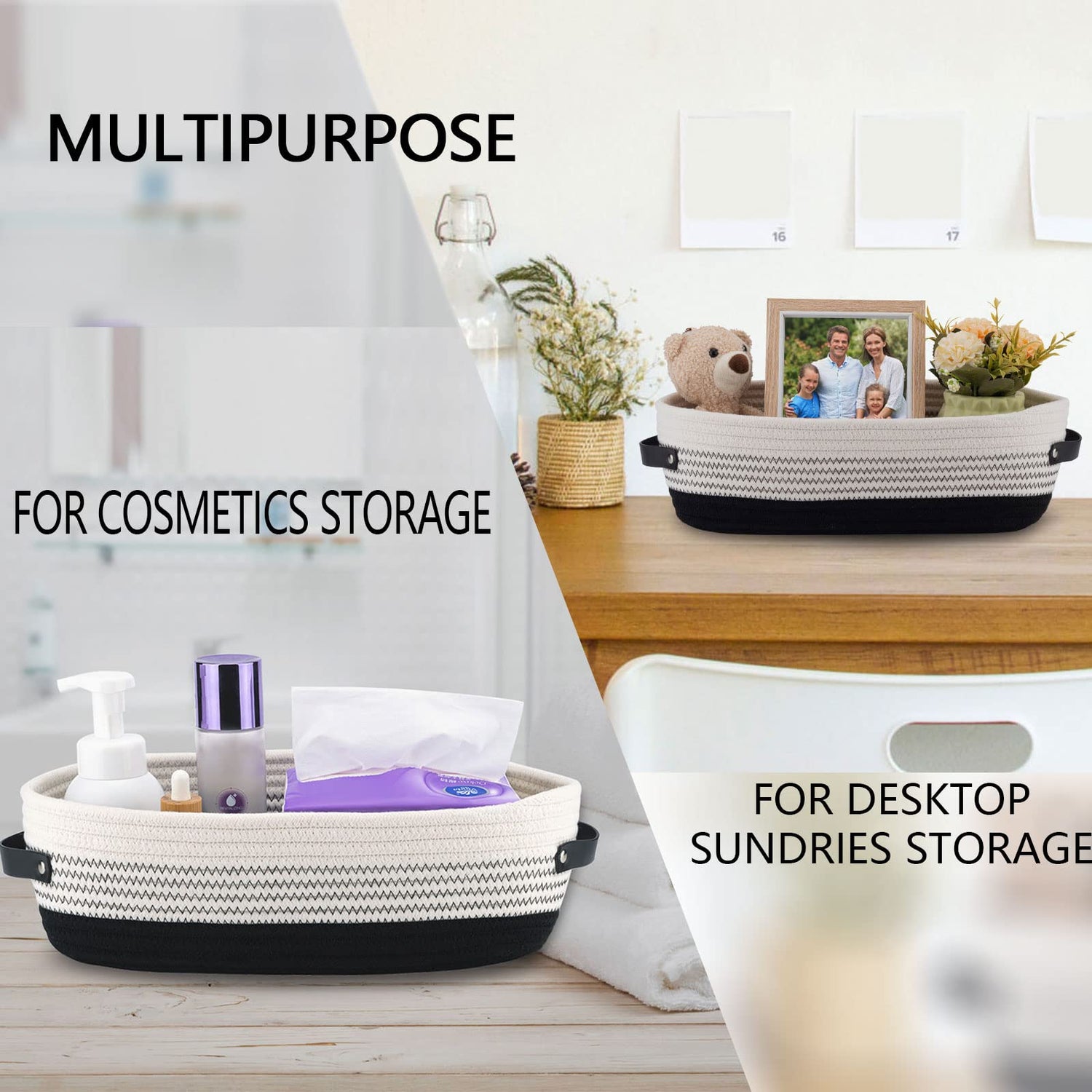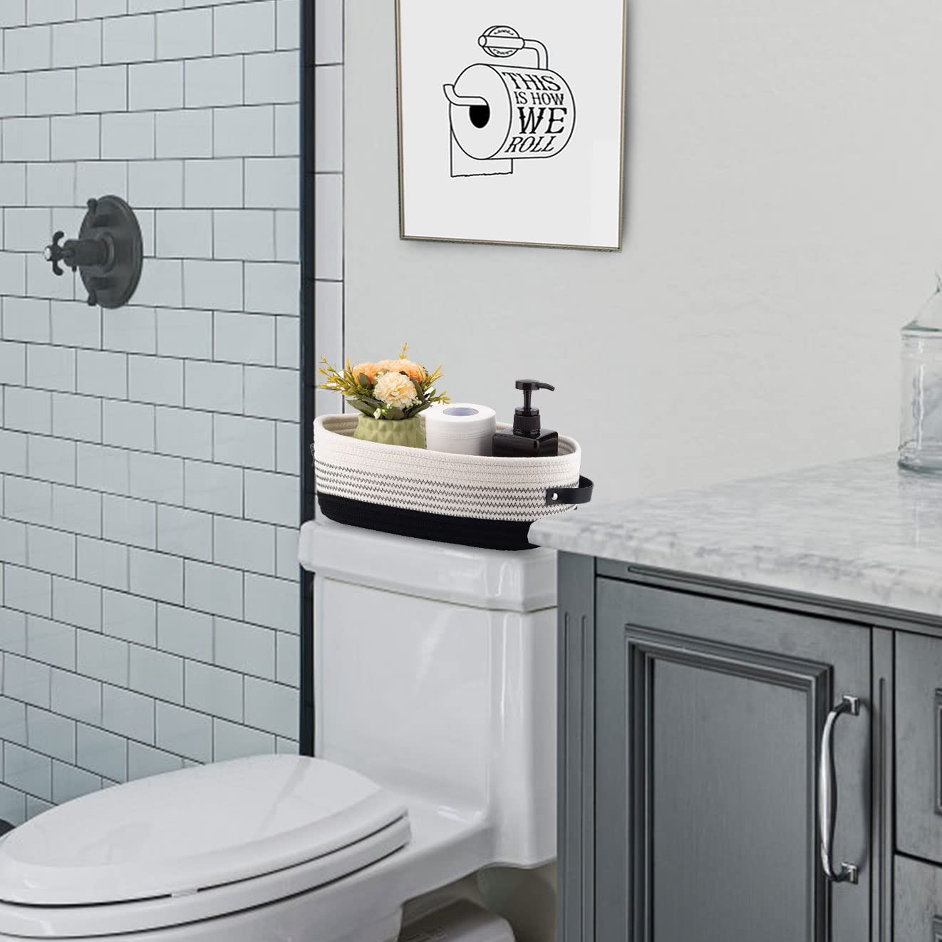 Oradrem Cotton Rope Toilet Basket Bathroom Decor Baskets, Toilet Paper Holder Basket, Farmhouse Home Decor Organizing Small Baskets 13"x5.9"x4" Black