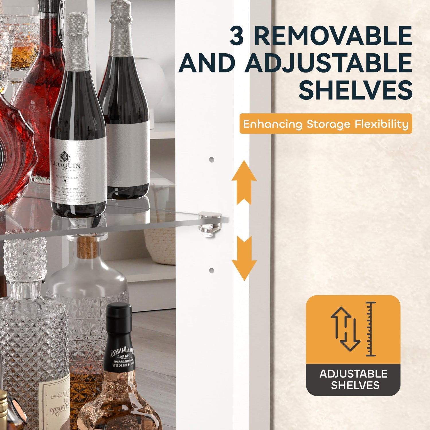 - Adjustable Shelving:Experience versatile storage with this corner bar that features three adjustable and removable shelves, designed to meet your evolving collection needs. The flexible shelving system allows you to organize bottles of different sizes and shapes easily, ensuring your bar corner remains tidy and enhances your ability to personalize storage for an attractive and practical display.