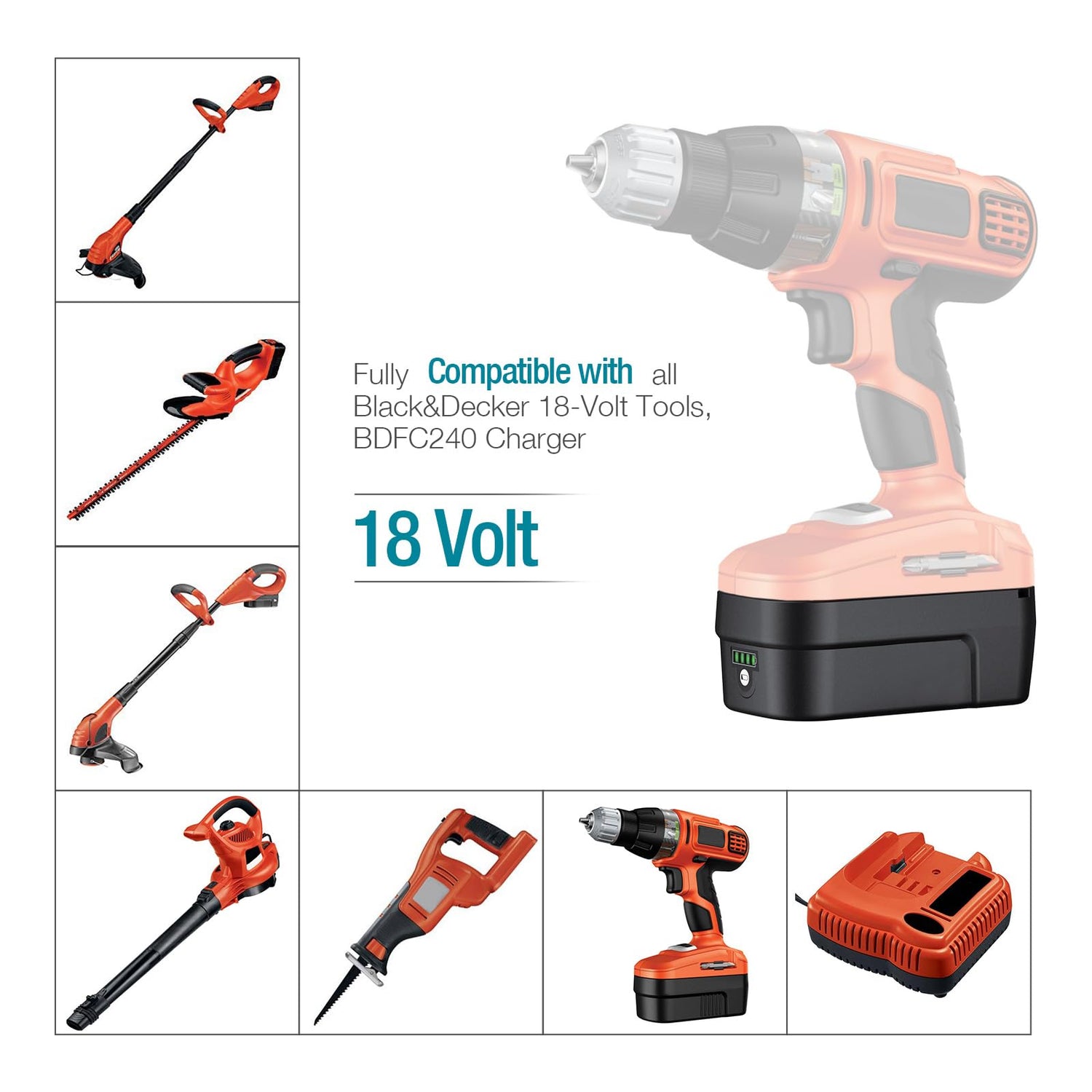 - ★Compatible with Black & Decker NHT518, NPP2018, NPT3118, NS118 etc, Professional Replacement Battery for Black & Decker HPB18 HPB18-OPE 244760-00 A1718, Compatible with black and decker BDFC240 Charger.
