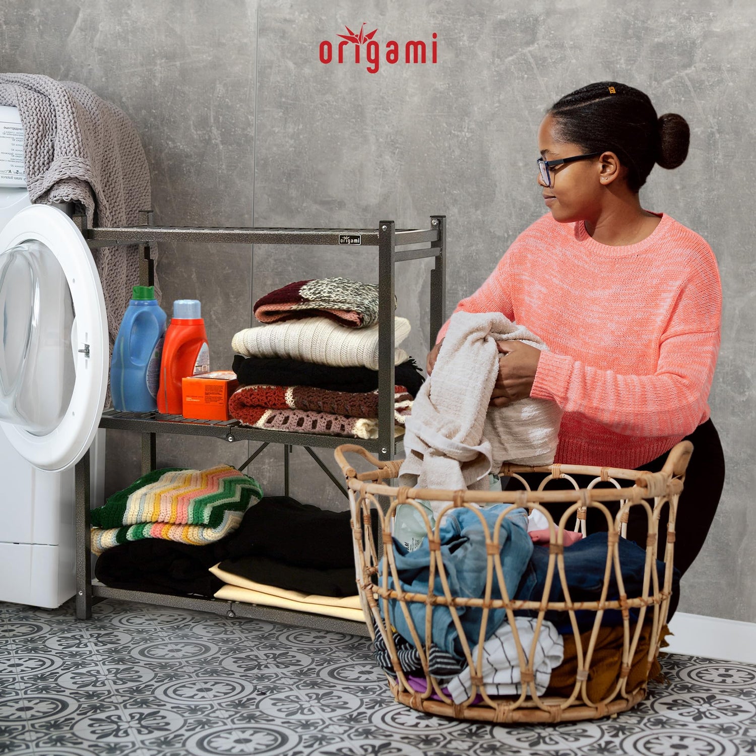 - Thoughtfully Designed 3-Tiered Storage: Innovative Origami foldable shelving rack made of commercial grade powder-coated steel provides a heavy duty yet mobile storage solution perfect for all your storage needs