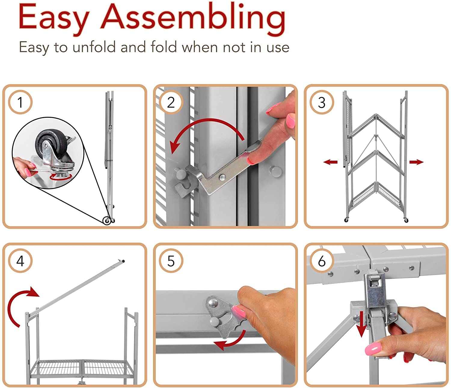 - Set Up Instantly: Unfolds in 5 seconds. Why build a shelf when, right out the box, you get a 100% Pre-Assembled wire steel shelf to give your room the compliment it needs for organization and storage