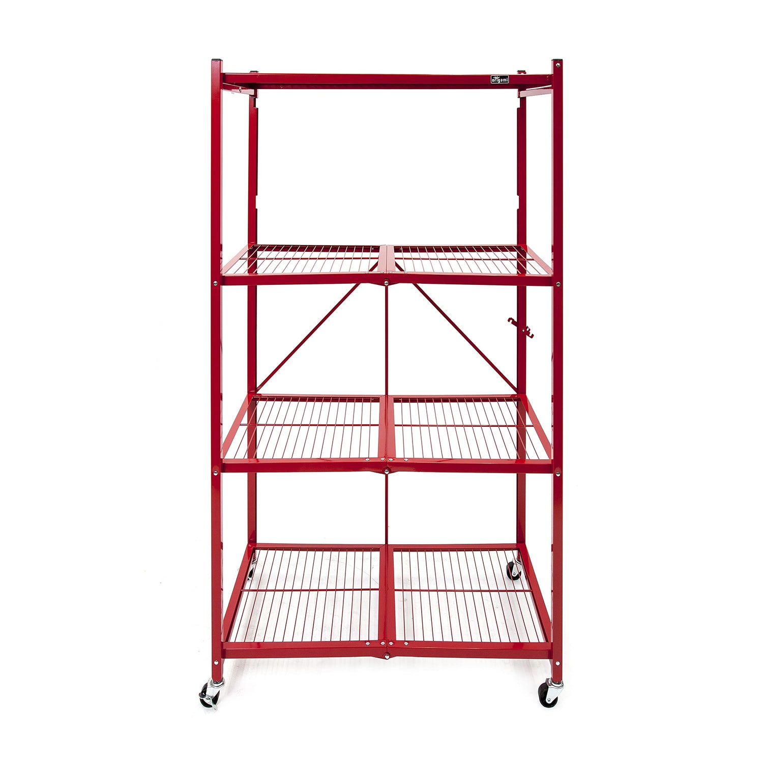 Origami R5 Foldable 4-Tier Garage Shelving Heavy Duty Shelving with Wheels, Metal Storage Rack Holds 1000 pounds, Garage Storage Rack & Organization, Storage Shelving (Red, R5)