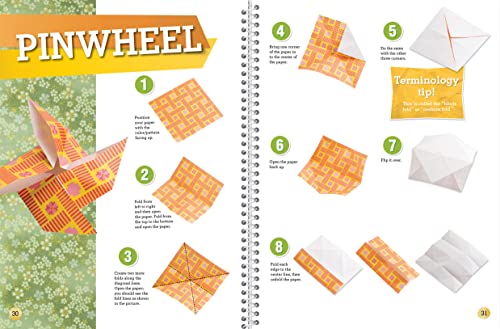 Details: This book includes step-by-step instructions to create more than fifteen traditional origami models. Models range from simple to complex, from quick, whimsical models that can be folded quickly to beautiful artwork that will require precise folds and attention to detail. Each model is demonstrated with step-by-step photographs that are easy to follow, folded by origami experts. Learn how to fold a variety of birds, including a playful penguin, an elegant swan, and the challenging traditional crane. Other animal models include a dog, a cat, a fox, a seal, a pig, a bunny, and a frog that hops when you press on its back. Along with these, you’ll learn to create a lily, a tulip, a sailboat, a balloon, a pinwheel, and a masu box in which to store your tiniest treasures. As you fold, you’ll also learn vocabulary and how-to tips that can be applied to other models. Origami paper is not included. 6 by 6 inch origami paper is recommended to create models in the book. Spiral bound, 64 pages. Whether you’re looking for a kid-friendly activity, a small handcrafted gift to give to a friend, or a way to let go of stress, Origami Tips and Techniques makes it easy to create art!