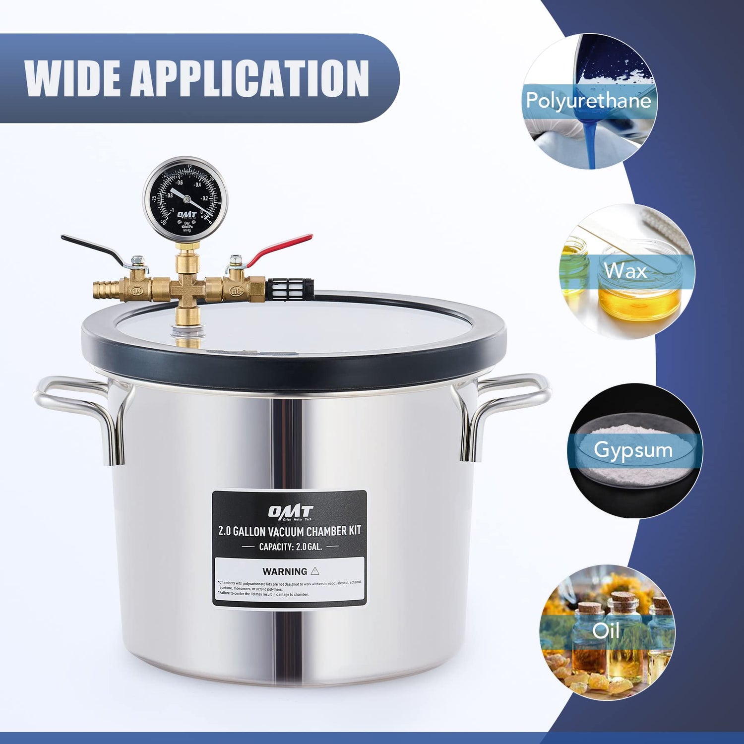 • VACUUM CHAMBER SET: This professional degassing chamber kit from Orion Motor Tech includes a 2 gallon chamber, a 3.5 cfm pump, a 5ft. wire hose, and other accessories needed to quickly, easily, and safely handle removing air and other gases from resin, epoxy, oil, and other solvents (Cannot Be Used on Wood Stabilization)