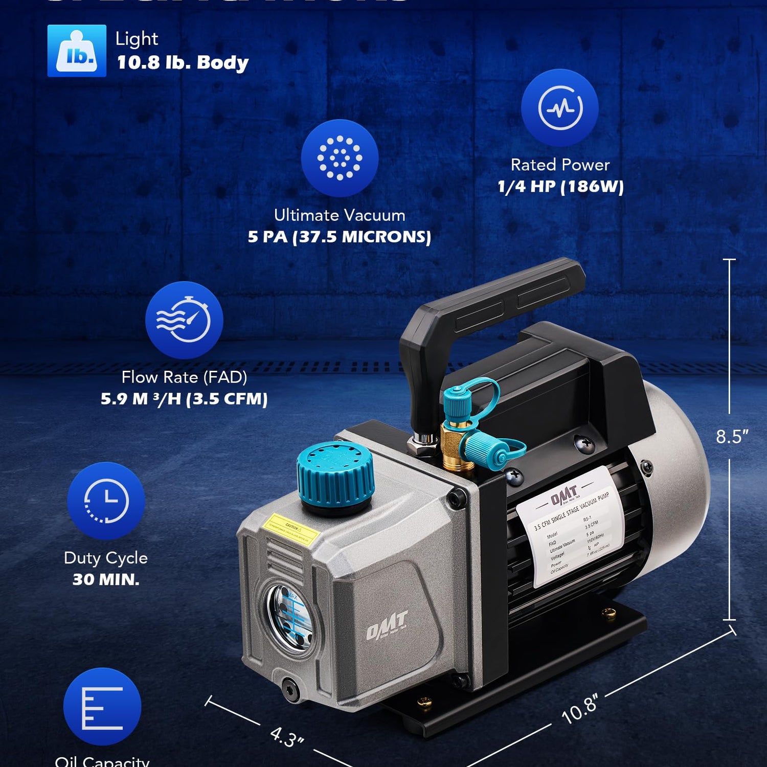 Pump Oil Capacity: 0.24 qt. (225 mL)