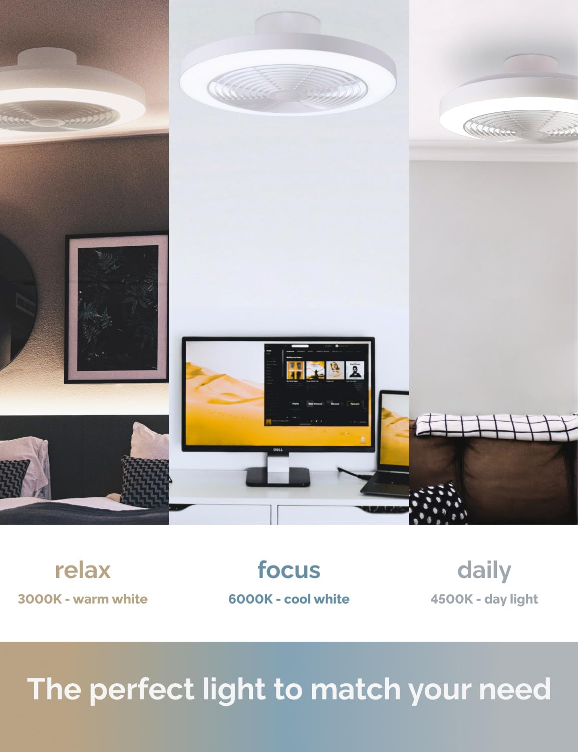 Orison Smart Bladeless Low Profile Ceiling Fan with LED-RGB Ambient Lighting Compatible with Alexa/Google Assistant/App Control, 6-Speed Color Change, Quiet Operation with Remote &App,19.7" (White)