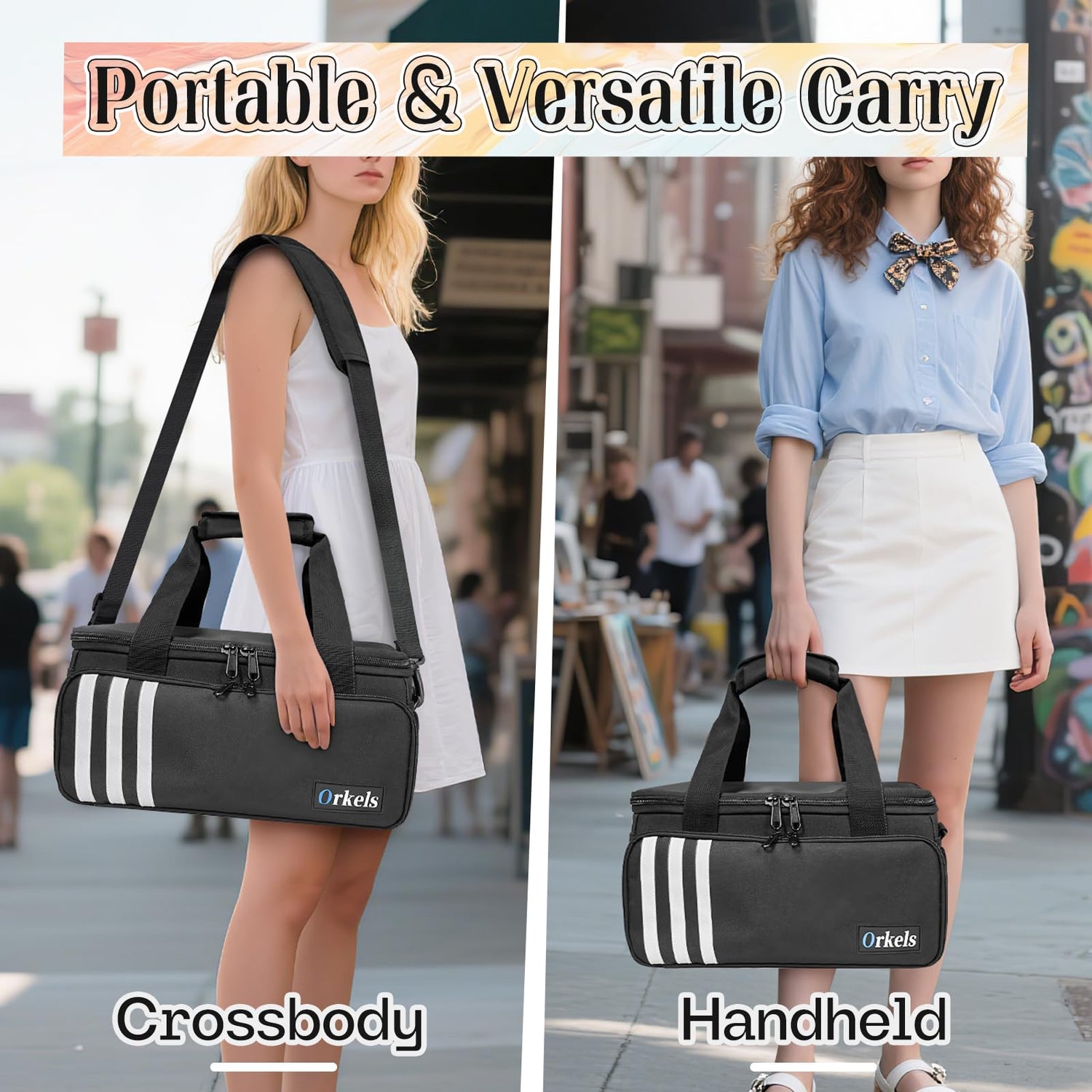 ORKELS Craft Paint and Marker Organizer, Acrylic Paint Storage Bag with Brush and Bottle Holders, Large Marker Carrying Case for Artists (Black)